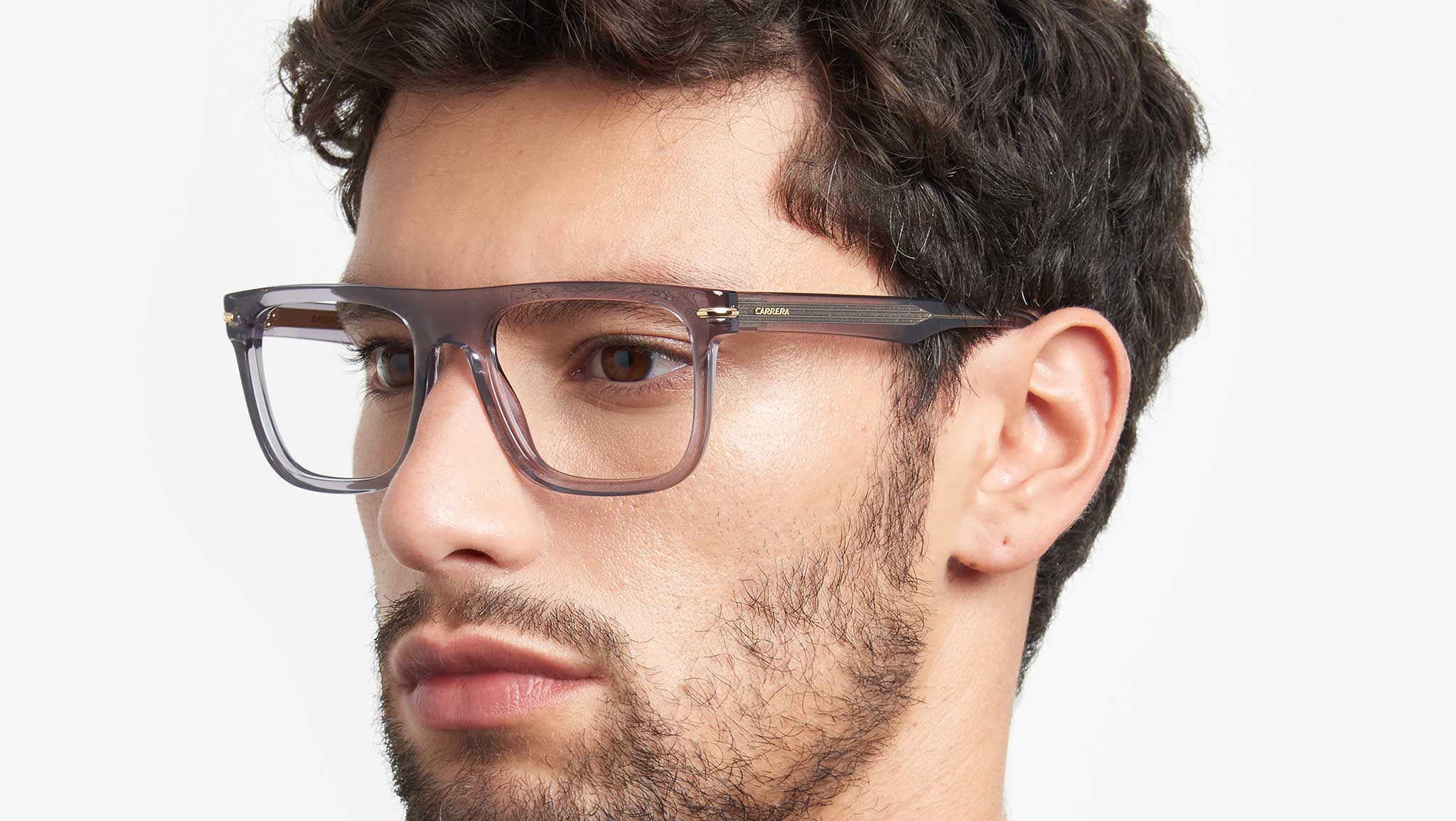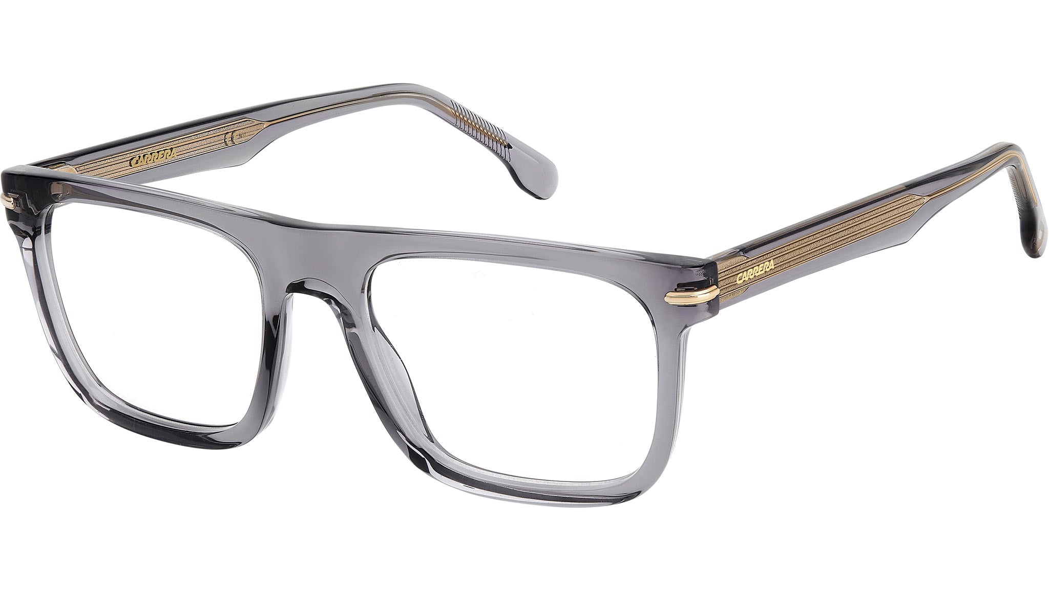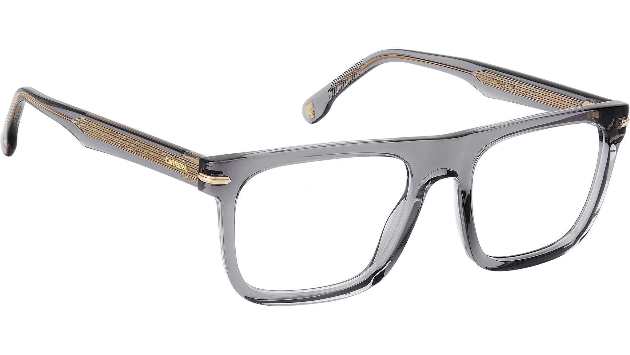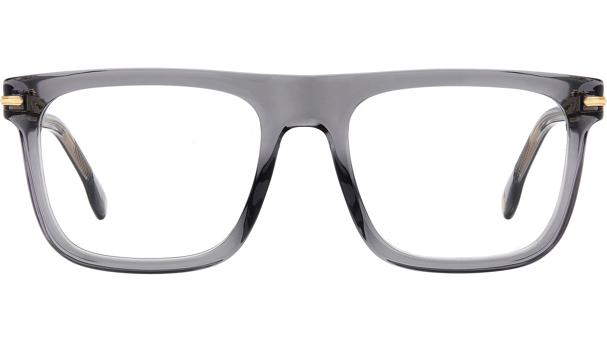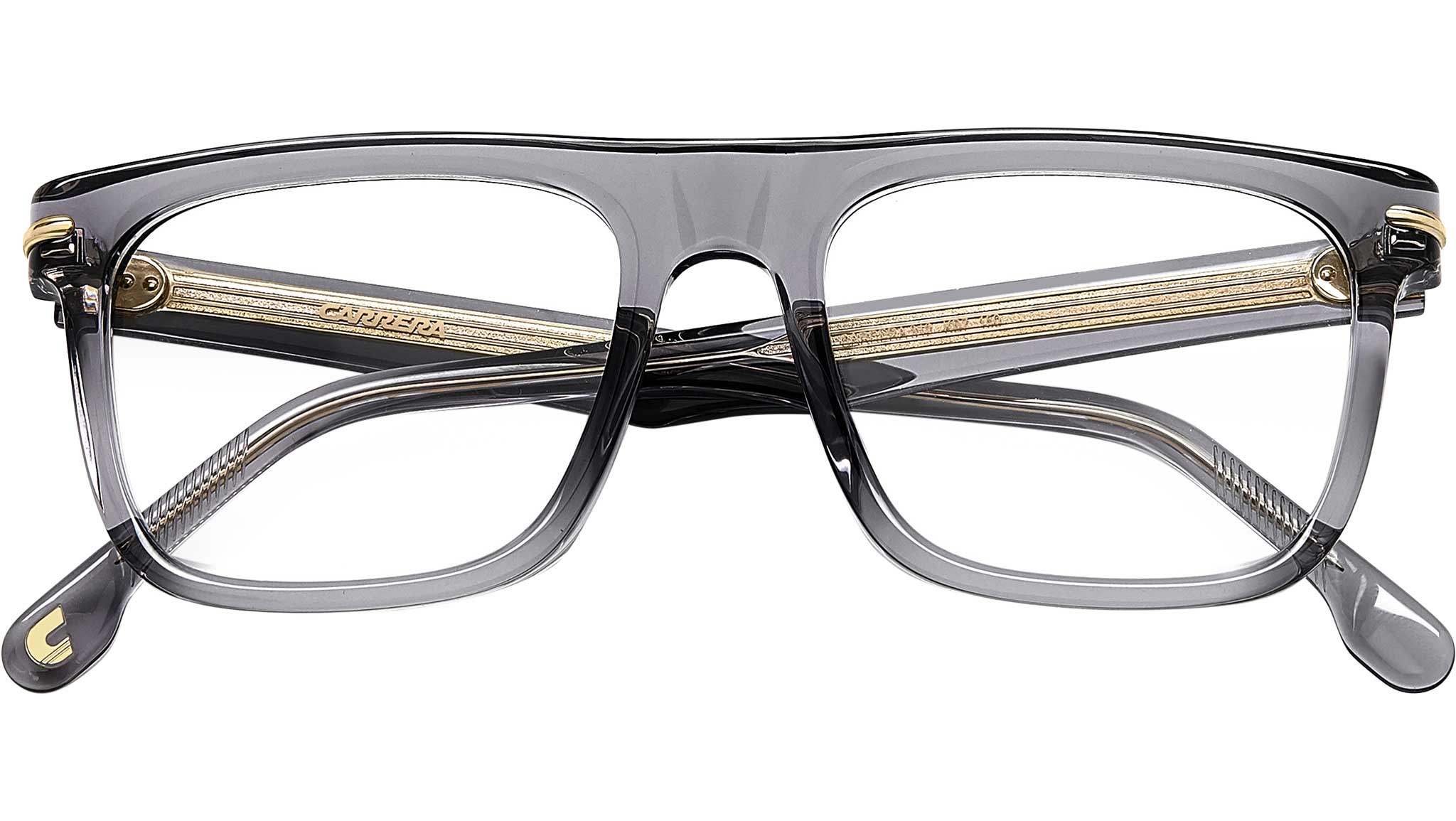 Occhiali da vista Carrera modello 312 colore KB7 grey. Destinati a riscrivere le regole, questi occhiali da vista accostano riferimenti vintage a profili bold rigorosamente attuali. La montatura flat-top è interamente in acetato, proposta anche nella versione con frontale multistrato. Le cromie senza tempo contrastano con l’elemento metallico sul frontale: un vero boost per i look quotidiani. Le aste a pinna omaggiano la storia del brand, ancora più incisive grazie all’anima a vista, sempre firmate dal logo Carrera.
