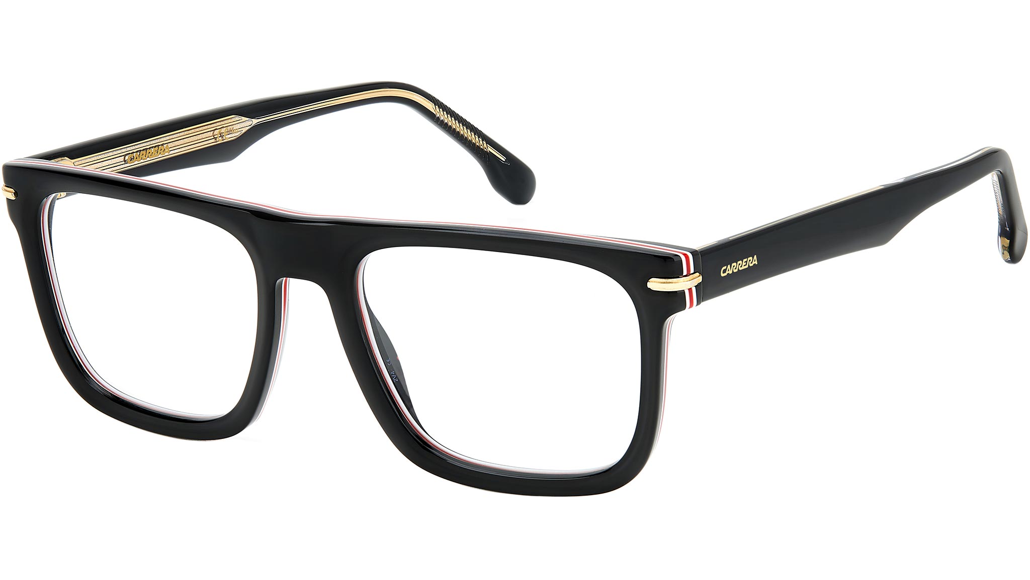 Occhiali da vista Carrera modello 312 colore M4P striped black. Destinati a riscrivere le regole, questi occhiali da vista accostano riferimenti vintage a profili bold rigorosamente attuali. La montatura flat-top è interamente in acetato, proposta anche nella versione con frontale multistrato. Le cromie senza tempo contrastano con l’elemento metallico sul frontale: un vero boost per i look quotidiani. Le aste a pinna omaggiano la storia del brand, ancora più incisive grazie all’anima a vista, sempre firmate dal logo Carrera.