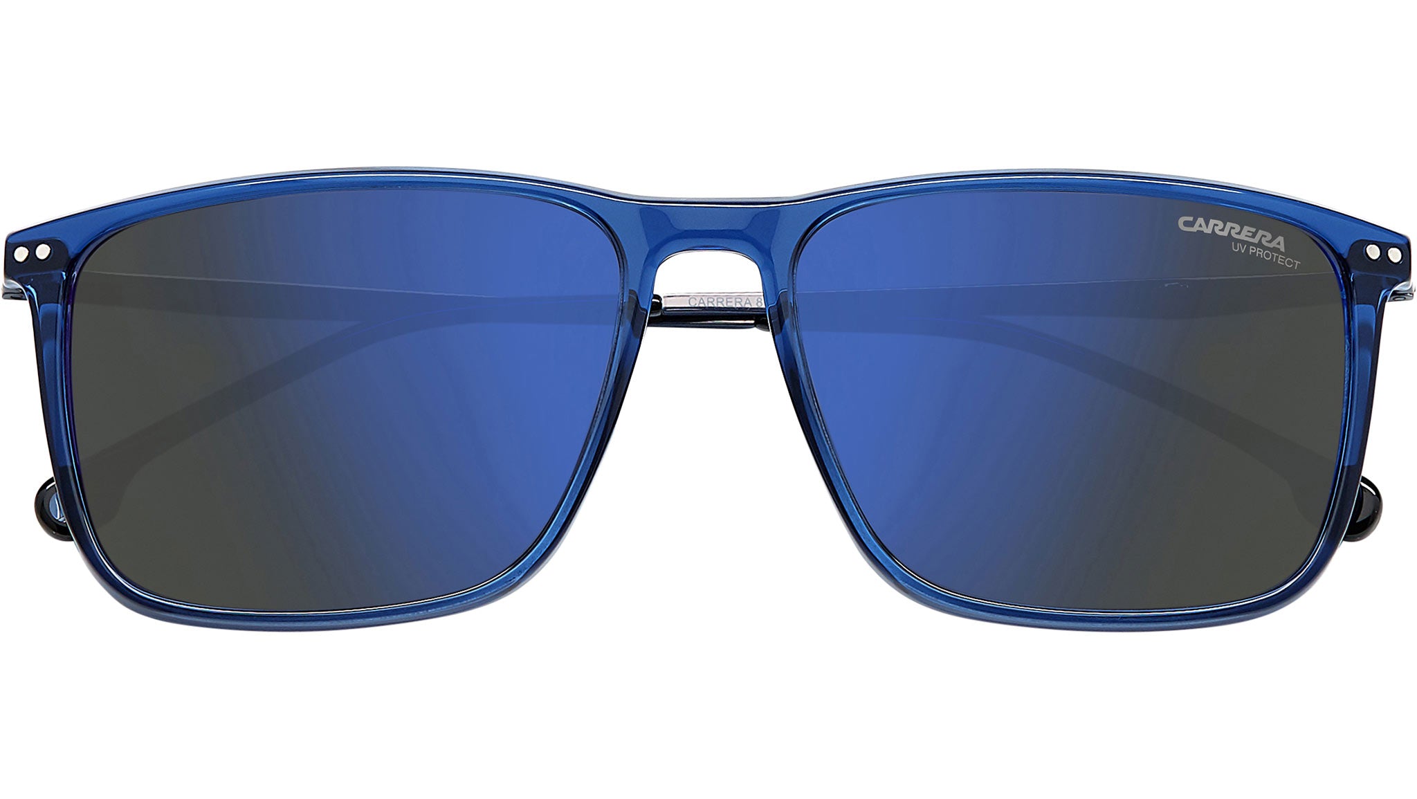 Occhiali da sole Carrera modello 8049/S colore PJP blue. Questi occhiali da sole rettangolari da uomo sono progettati per stare al passo con i tempi. La sportiva silhouette squadrata presenta il frontale in acetato e le eleganti aste in beta-titanio dalla texture leggera, flessibile e incredibilmente resistente. Il logo Carrera inciso spicca sulle tempie e la lente sinistra, mentre le lenti colorate aggiungono un tocco distintivo.