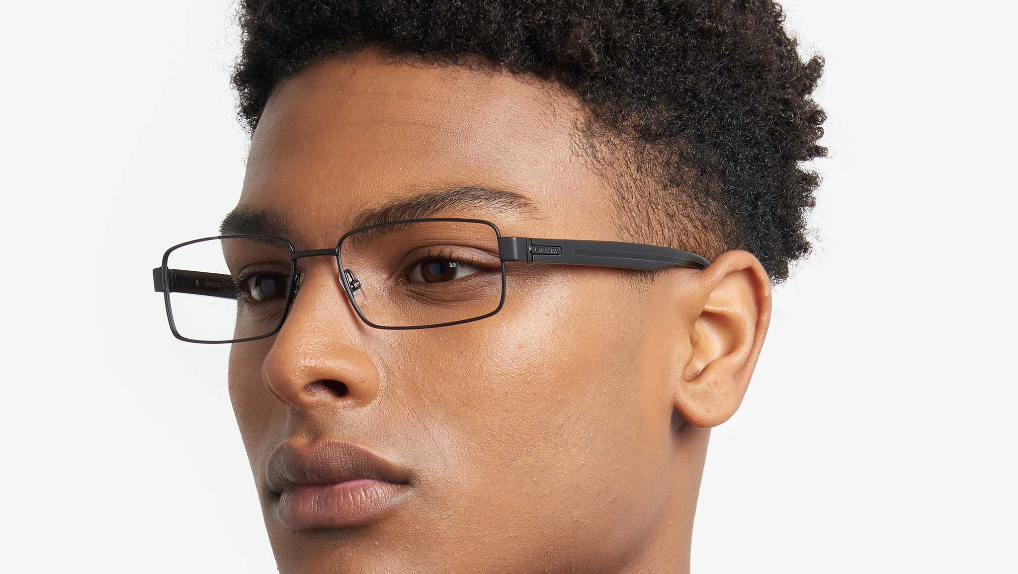 Occhiali da vista Carrera modello 8887 colore 003 matte black. Aggiungono una nota sporty agli outfit quotidiani questi occhiali da vista Carrera. La montatura rettangolare in acciaio inossidabile è infatti essenziale e versatile, ancora più comoda grazie ai naselli regolabili. Si agganciano al frontale le aste rivestite di acetato su cui spicca la targhetta con il logo in altorilievo, dotate di cerniere flessibili per una vestibilità ad hoc.