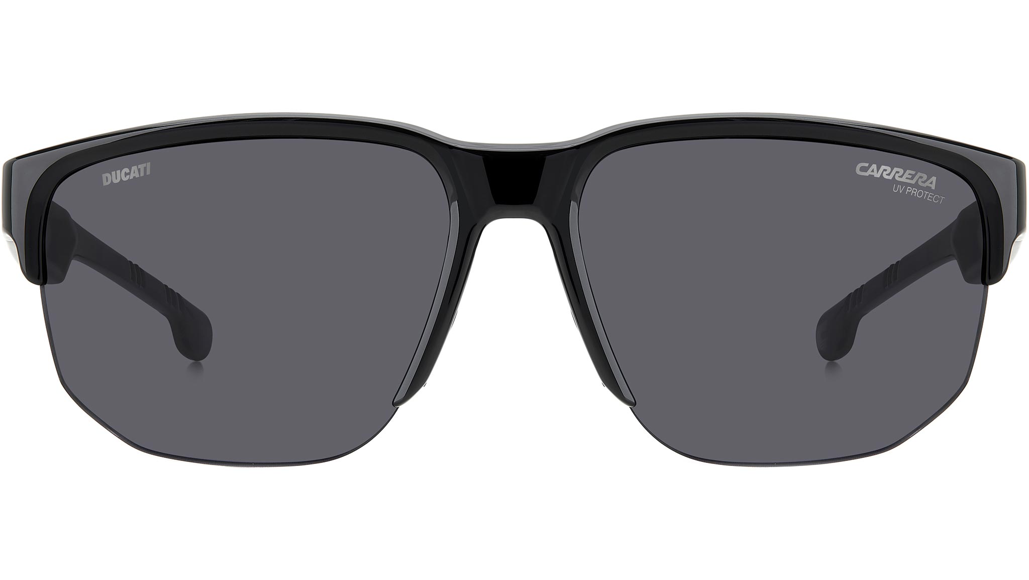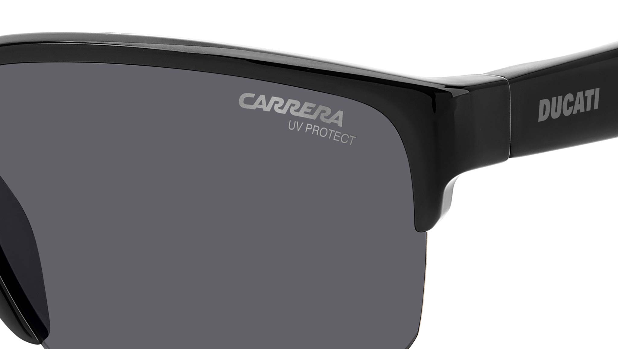 Occhiali da sole Carrera Ducati modello CarDuc 028/S colore 807 IR black. La passione per la velocità su due ruote si esprime con questi occhiali da sole Carrera | Ducati. Le aste aerodinamiche omaggiano la Panigale, il loro design diritto e i terminali in gomma lucida facilitano l’utilizzo sotto il casco. Il frontale a mezza montatura è disponibile anche con lenti specchiate o con tecnologia ultrapolar, per una visione definita anche su strada.