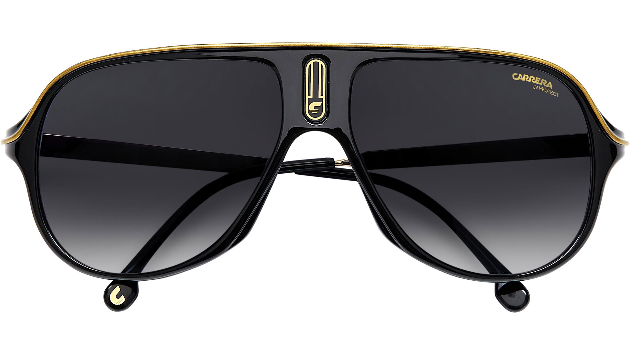Occhiali da sole Carrera modello SAFARI65 colore 807 black. Parte della collezione che celebra il 65° anniversario di Carrera, questi occhiali da sole unisex reinterpretano un design iconico del brand. Il profilo a mascherina è realizzato in Optyl ultraleggero ed evidenziato da un’audace barra centrale che ne accentua il mood contemporaneo e creativo. La caratteristica C, fieramente posizionata sul fronte al centro, e il logo lettering lungo le aste li rendono immediatamente riconoscibili dai fan e gli appassionati di stile.