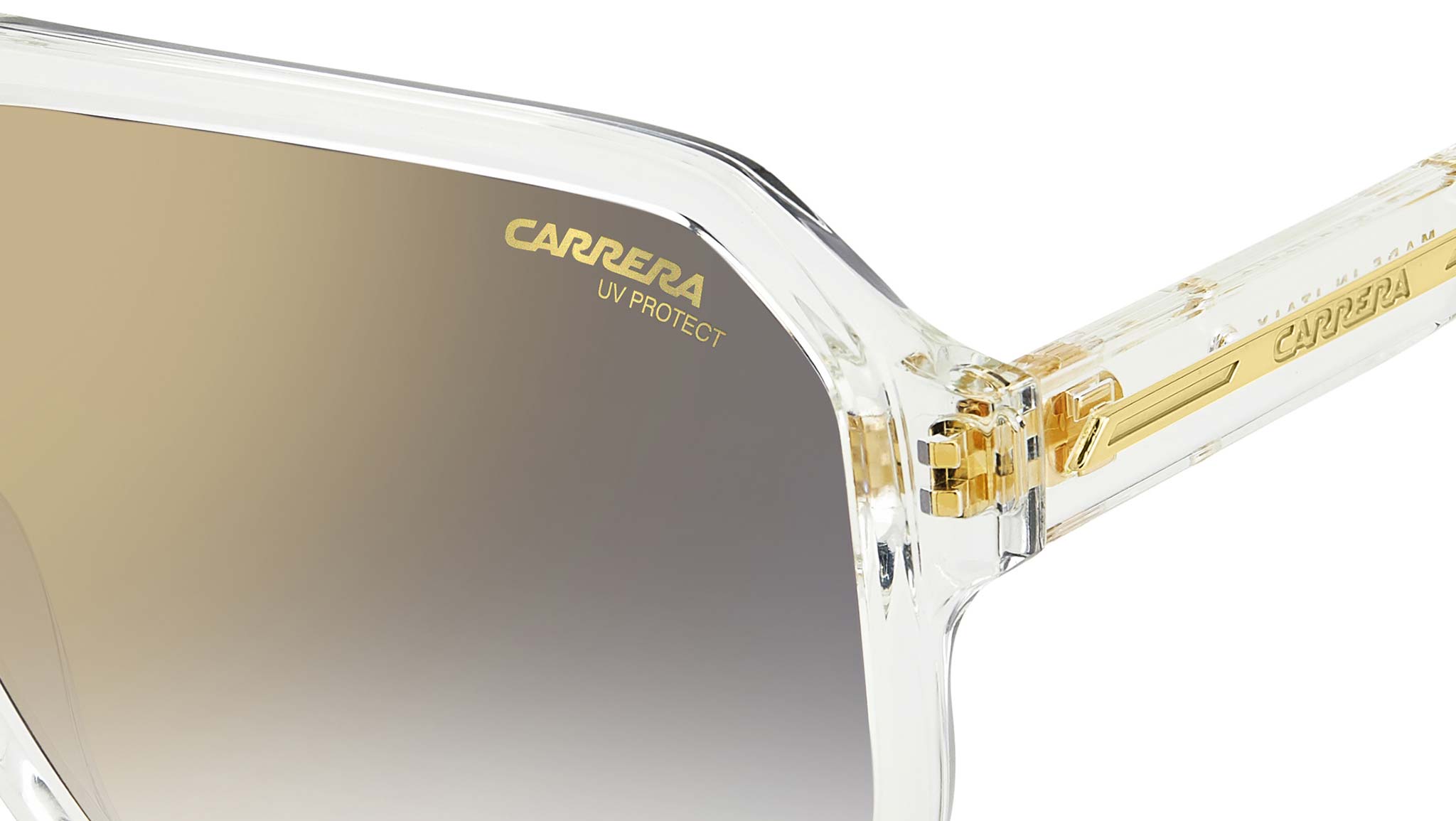 Occhiali da sole Carrera modello Victory C 01/S colore 900 FQ crystal. Carrera continua a scrivere la storia dell’eyewear: questi occhiali da sole sono un’edizione speciale dedicata ai festival musicali. Il modello è Made in Italy, per una qualità che non può passare inosservata. Il frontale navigator esibisce la C con flag Carrera sul doppio ponte, in posizione orizzontale a celebrare il logo Victory. Le lenti sono firmate “Carrera Festival Edition”: il trattamento iridescente è perfettamente in linea con lo stile Carrera.
