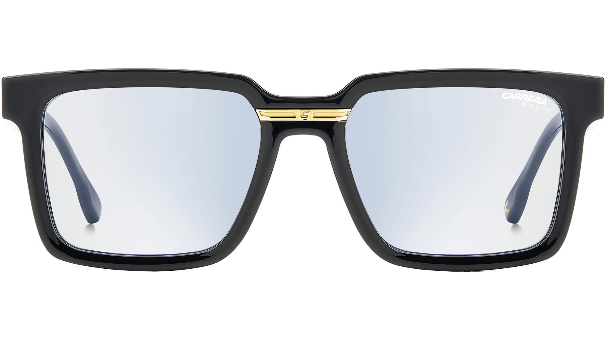 Occhiali da vista Carrera modello Victory C 02/BB colore 2M2 black gold. Il design di questi occhiali da vista Carrera è destinato a fare scuola. La montatura è scolpita in profili decisi, sapientemente rifinita, prodotta in Italia con inconfondibile qualità artigiana. La placca con l’iconica “C” non passa inosservata, posta in orizzontale tra le lenti e ripresa sulle aste per una riconoscibilità assicurata. Le lenti con filtro blue block proteggono dalla luce dei dispositivi elettronici.