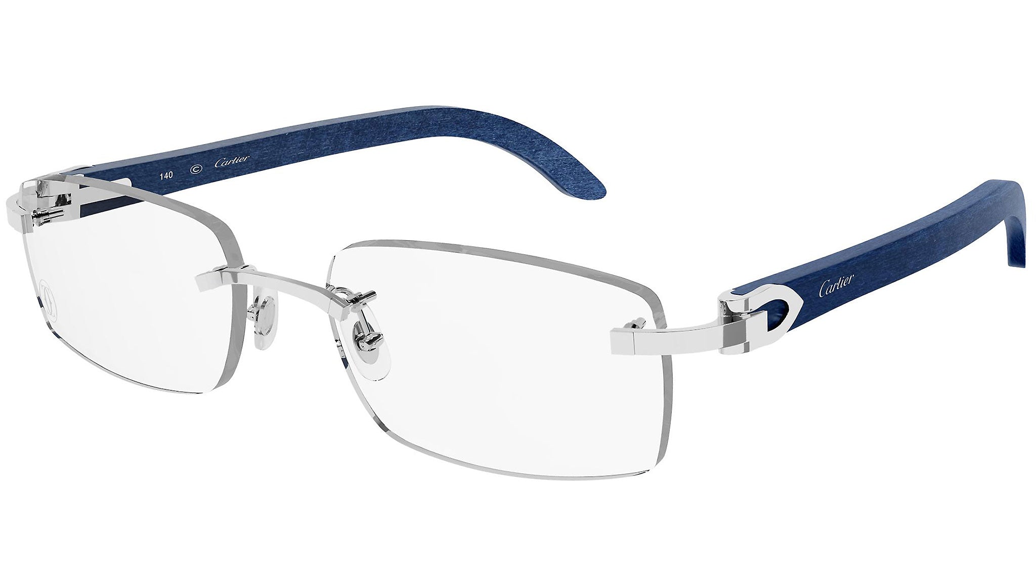 Occhiali da vista Cartier linea Exception modello 0052O, variante colore 007 finish platino levigato con astine color blu. Fondata nel 1847, Maison Cartier non è solo uno dei nomi più affermati nel mondo della gioielleria e dell'orologeria, ma anche il punto di riferimento del più moderno concetto di lusso contemporaneo. Cartier crea occhiali eccezionali, declina ogni design traendo ispirazione dai tratti distintivi del proprio vocabolario iconico, guidato da una vision stilistica chiara, dalla creatività più distintiva, e da un savoir-faire eccezionale.