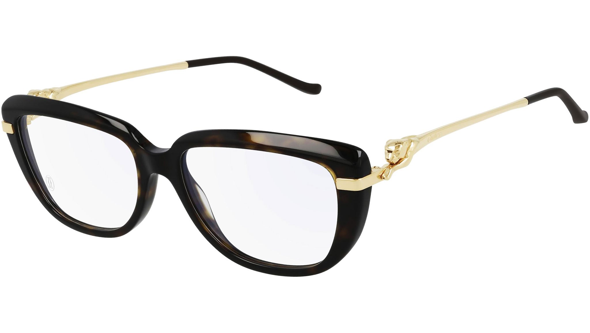 Occhiali da vista Cartier linea Core Range modello CT0282O 002, variante colore tartaruga scuro con astine color oro. Una visione esclusiva del più moderno concetto di eleganza, radicata nel savoir-faire e nell'alto artigianato della Maison, contraddistingue la nuova collezione di occhiali da vista Cartier Primavera Estate 2021. Una straordinaria combinazione di creatività e tecnicità dei materiali e delle soluzioni di design, prende vita in modelli unici e raffinati.