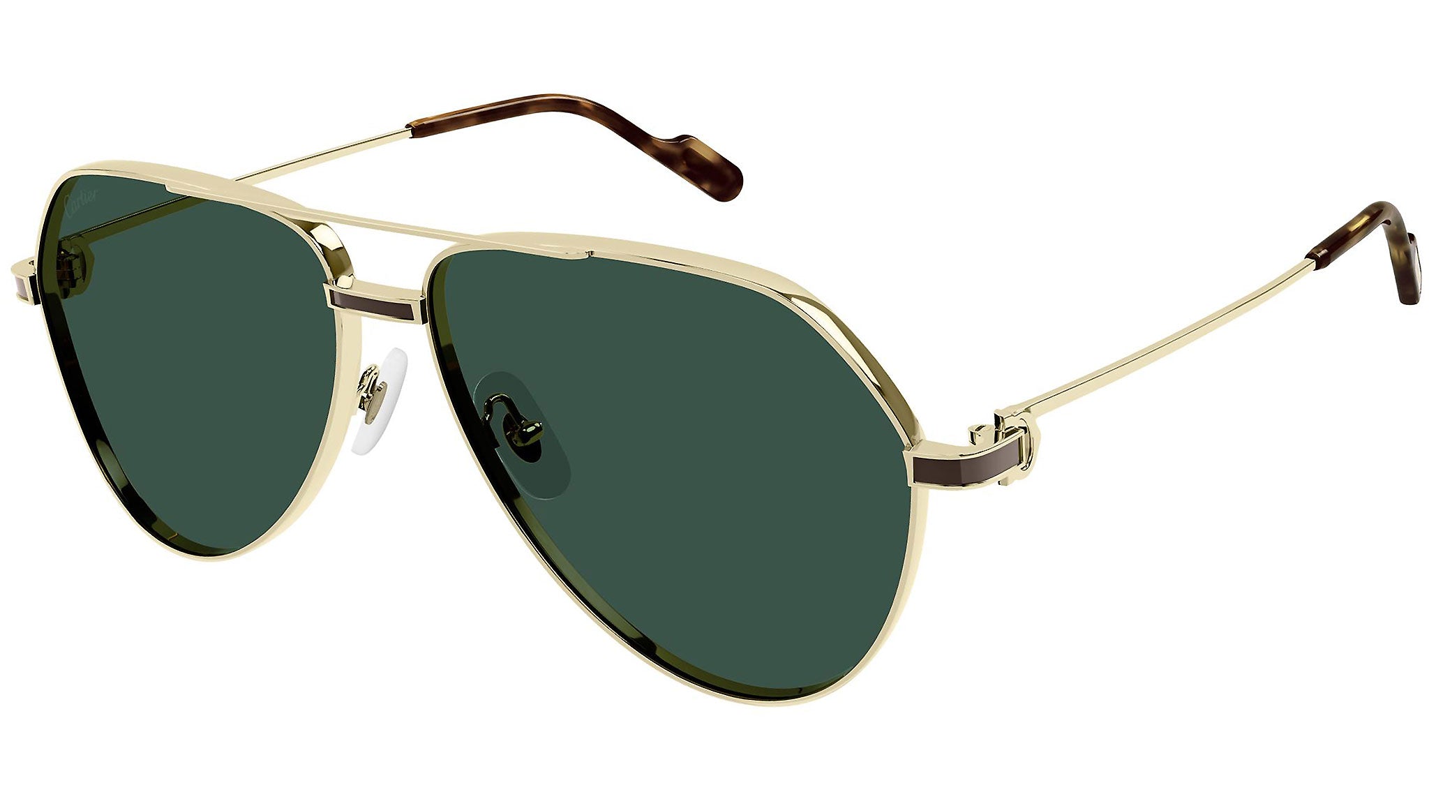 Occhiali da sole Cartier Exception modello 0334S, variante colore 002 oro finitura smooth con lenti color verde. Fondata nel 1847, Maison Cartier non è solo uno dei nomi più affermati nel mondo della gioielleria e dell'orologeria, ma anche il punto di riferimento del più moderno concetto di lusso contemporaneo. Cartier crea occhiali eccezionali, declina ogni design traendo ispirazione dai tratti distintivi del proprio vocabolario iconico, guidato da una vision stilistica chiara, dalla creatività più distintiva, e da un savoir-faire eccezionale.