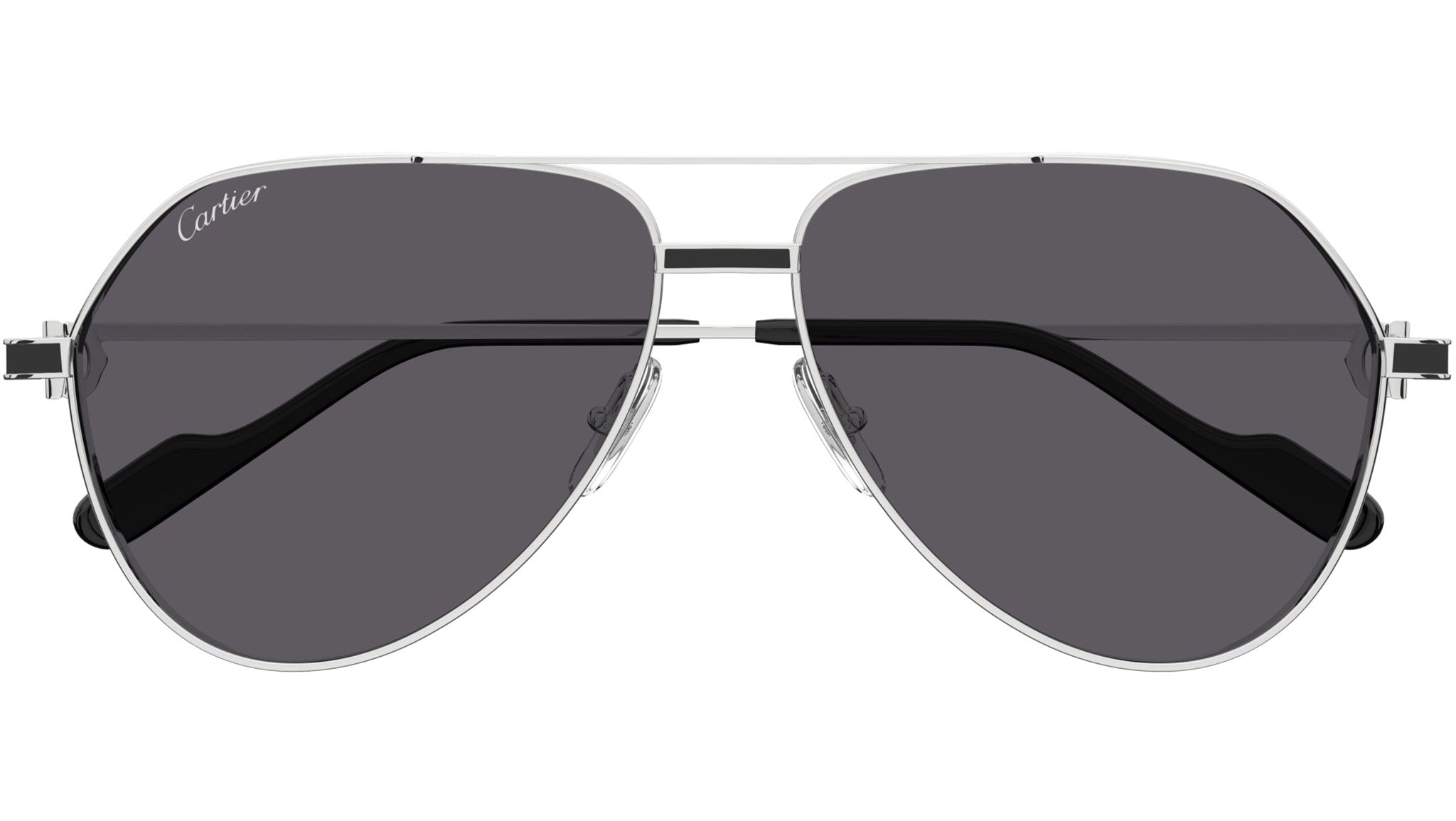 Occhiali da sole Cartier linea Exception modello CT0334S in metallo aviatore codice colore 004 finish platino levigato con aste color argento e lenti color grigio medio.