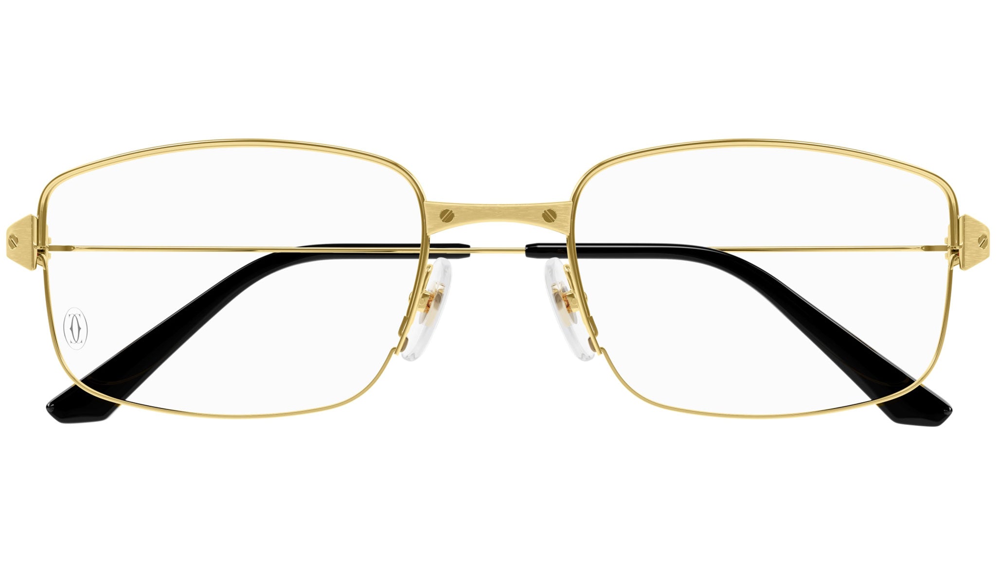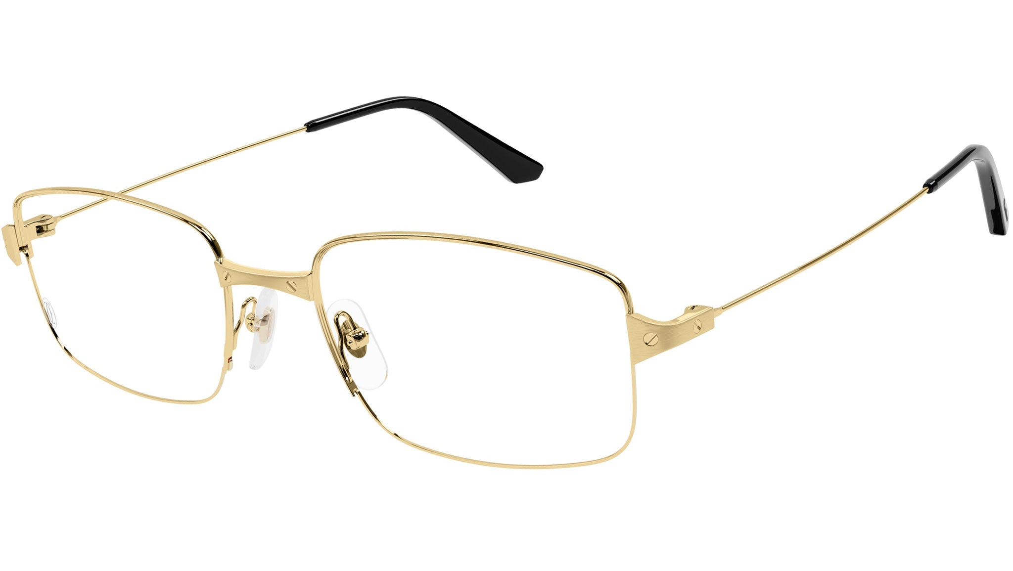 Occhiali da vista Cartier linea Core Range modello CT0406O variante colore 001 oro finitura smooth con astine color oro.