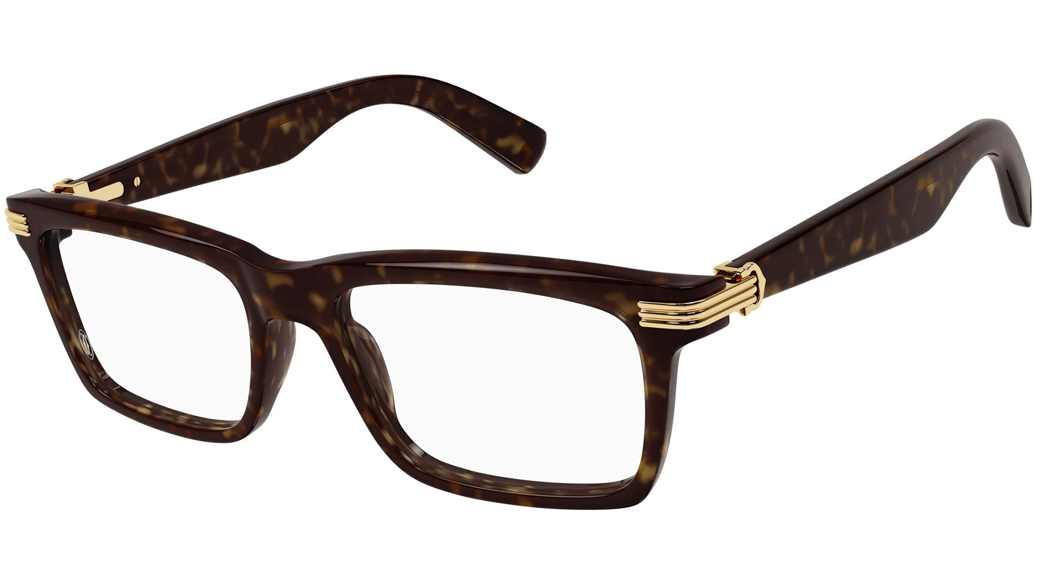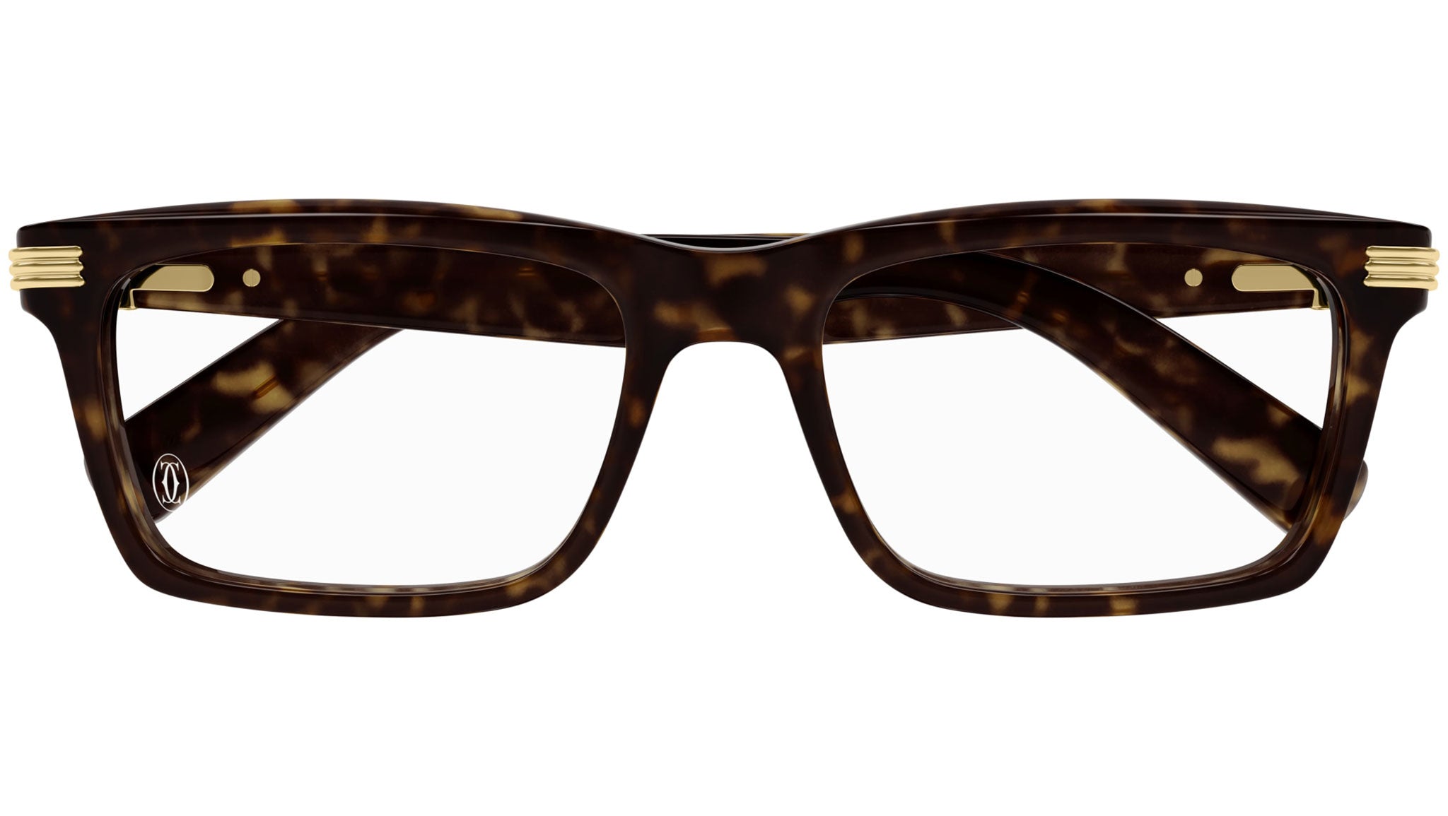 Occhiali da vista Cartier linea Contemporary modello CT0420O variante colore 002 tartaruga scuro con astine color tartaruga.