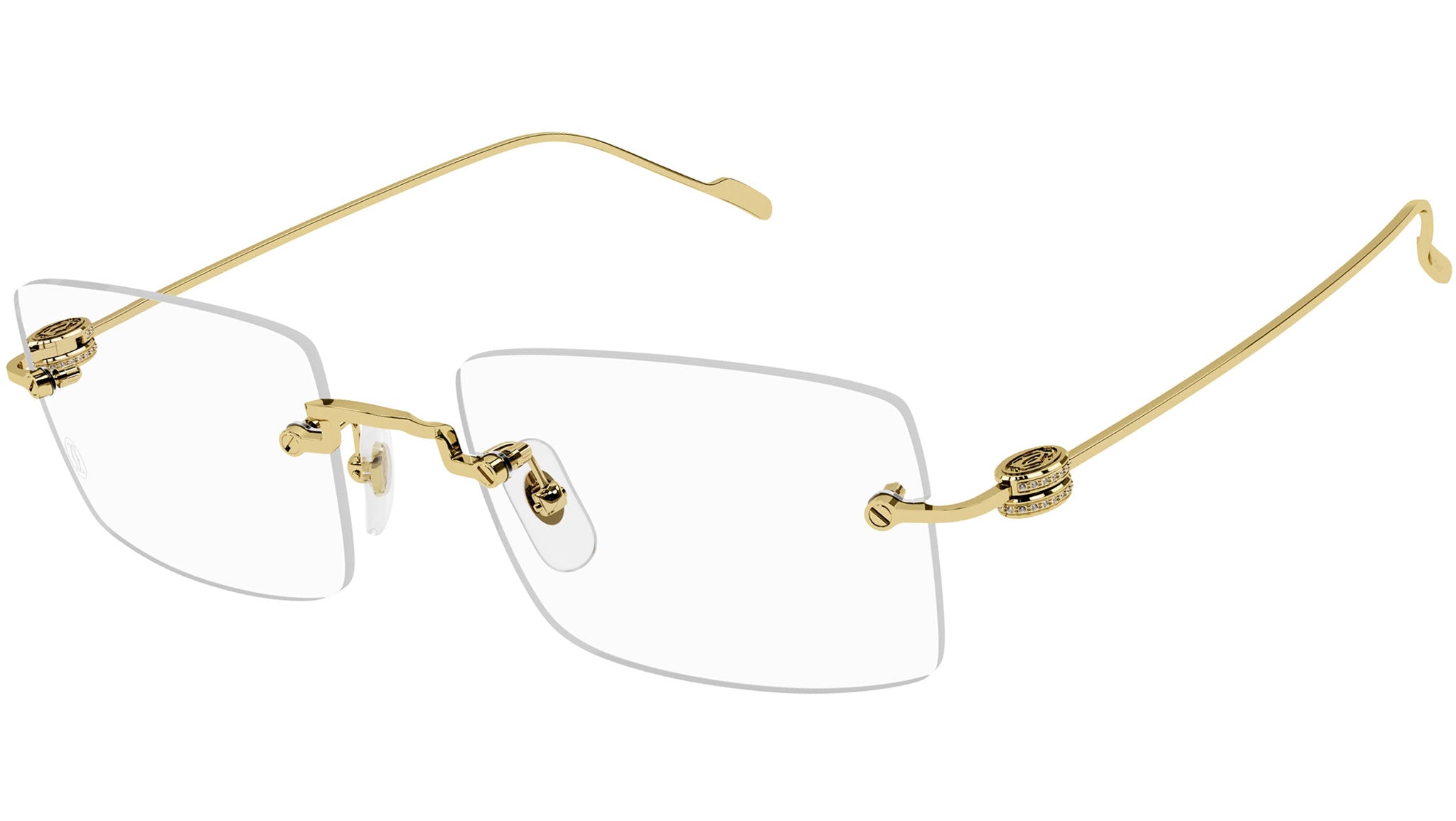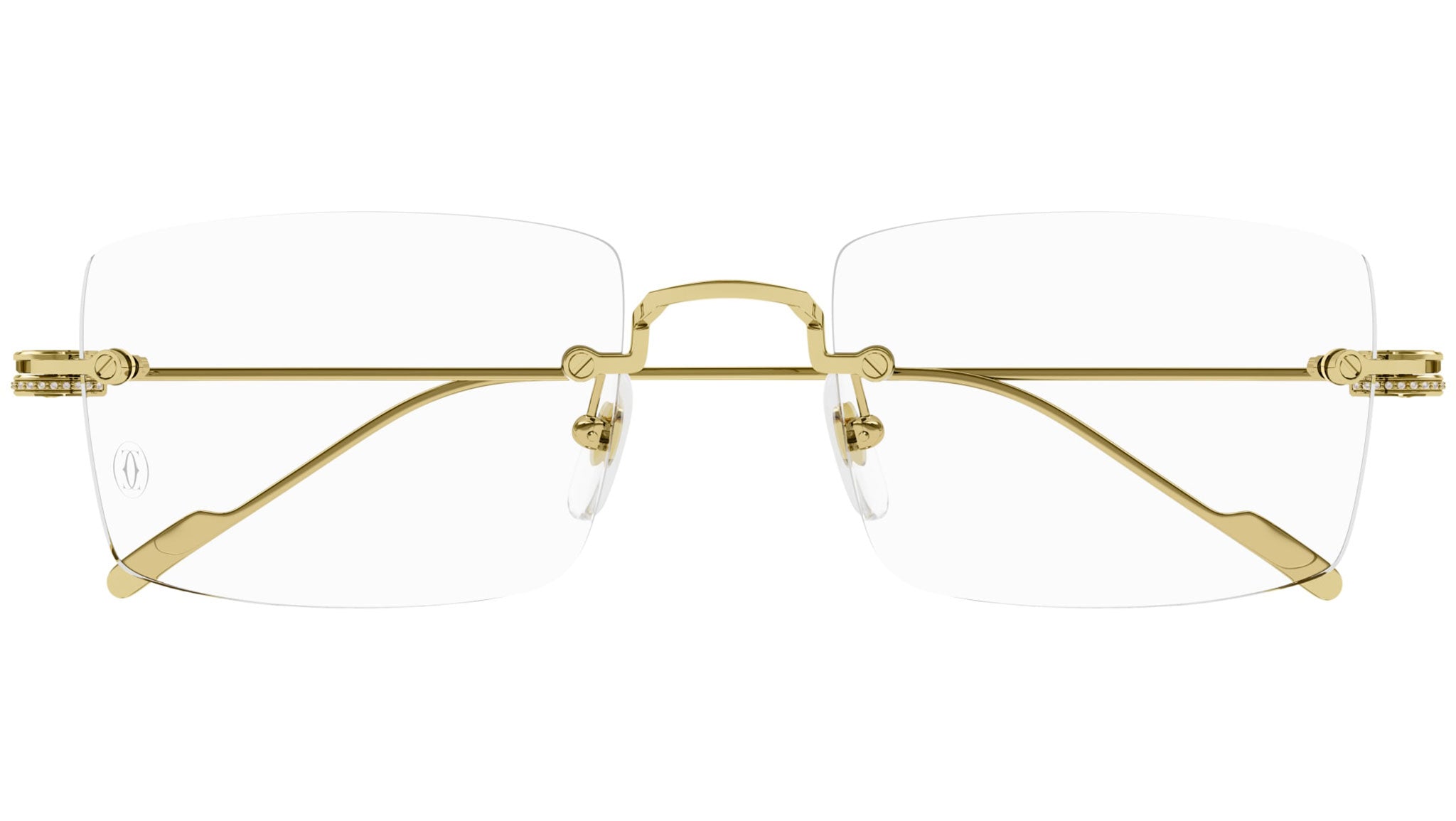Occhiali da vista Cartier linea Precious modello CT0422O variante colore 002 oro giallo tinta unita con astine color oro.