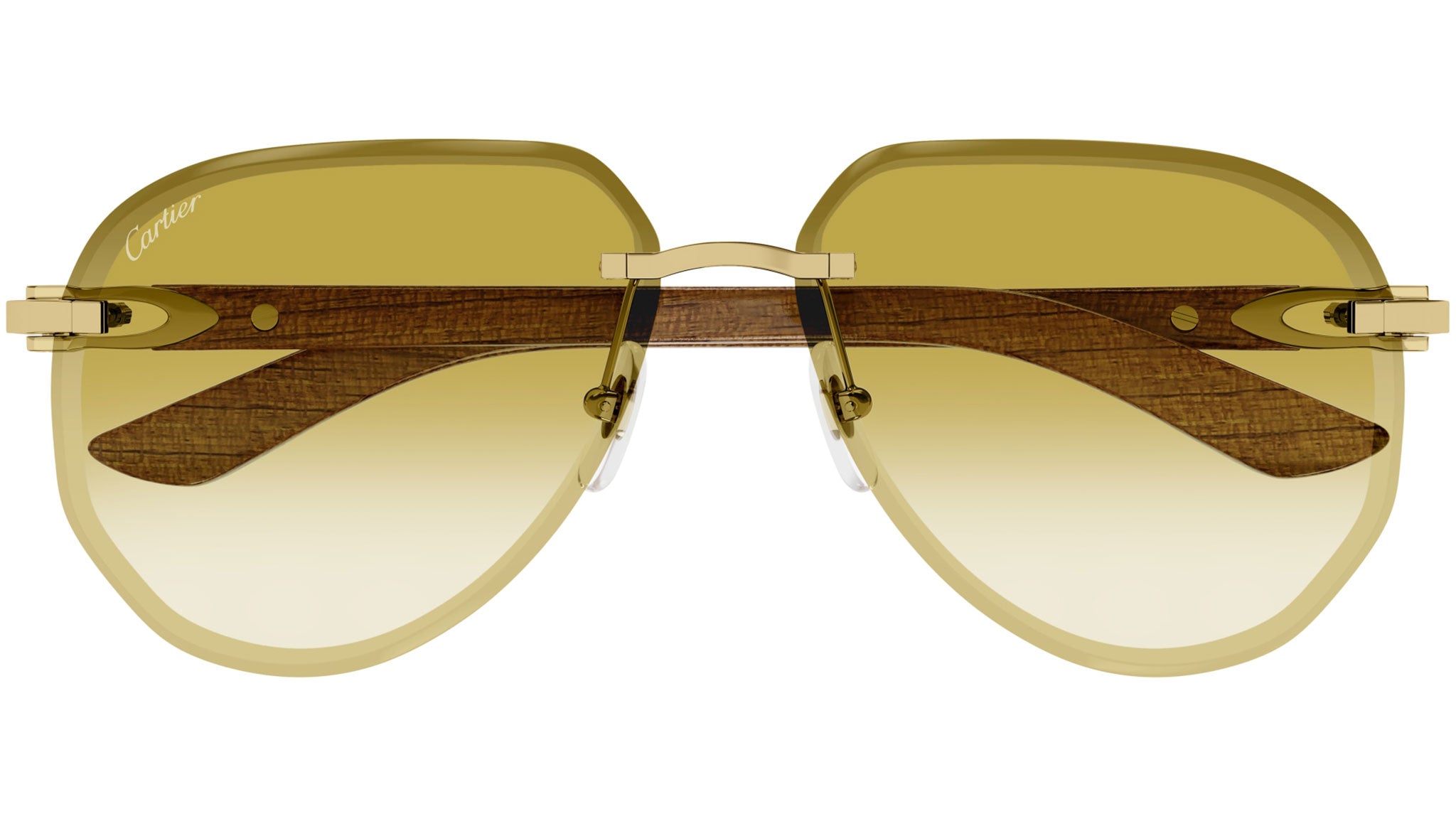 Occhiali da sole Cartier linea Exception modello CT0440S aviator in metallo codice colore 004 oro finitura smooth con aste marrone e lenti color ocra sfumato.