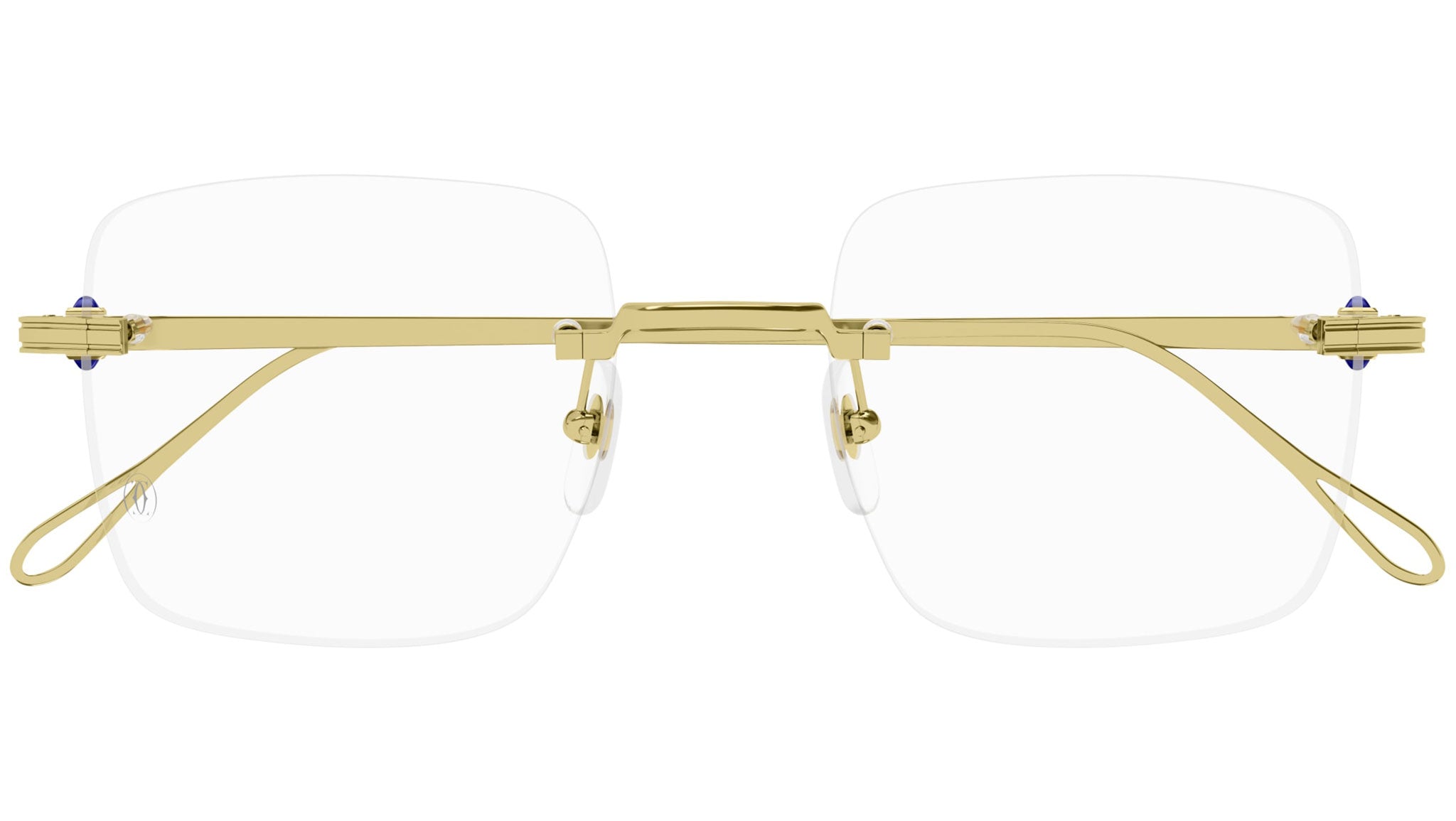 Occhiali da vista Cartier Precious modello CT0458O rectangle in oro codice colore 002 oro giallo tinta unita con aste oro e lenti demo da materiale riciclato con strato HR e filtro AR blu.