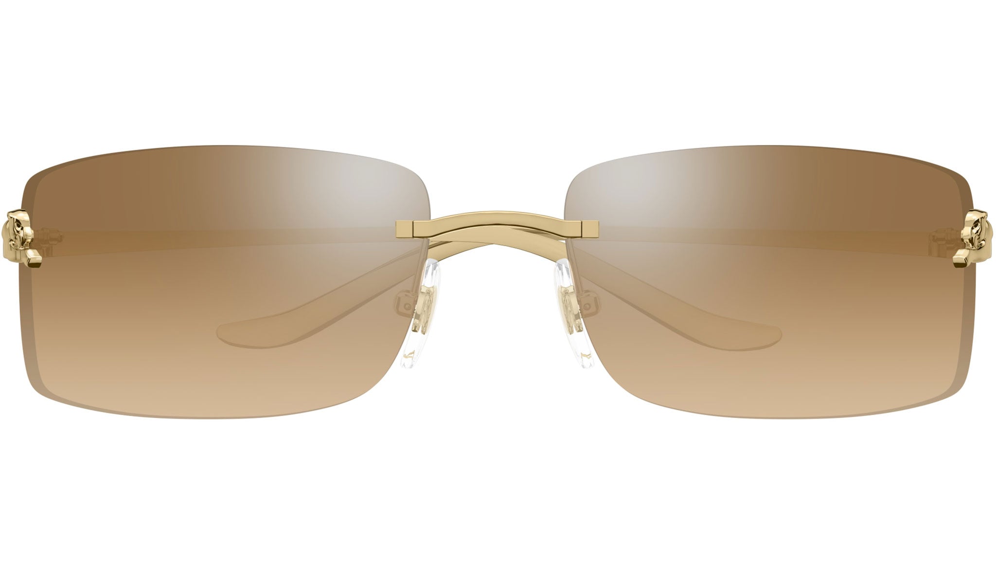 Occhiali da sole Cartier linea Core Range modello CT0503S in metallo rettangolare codice colore 004 oro finitura smooth con aste color oro e lenti color marrone classificato con flash argento chiaro.