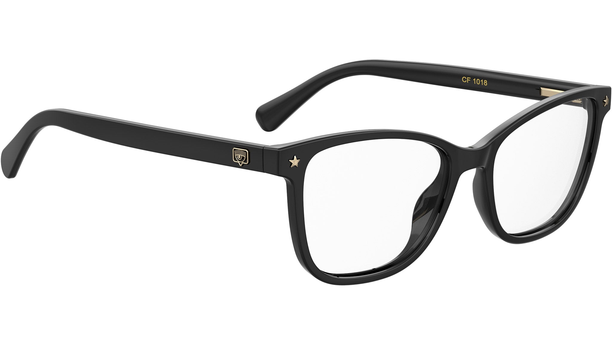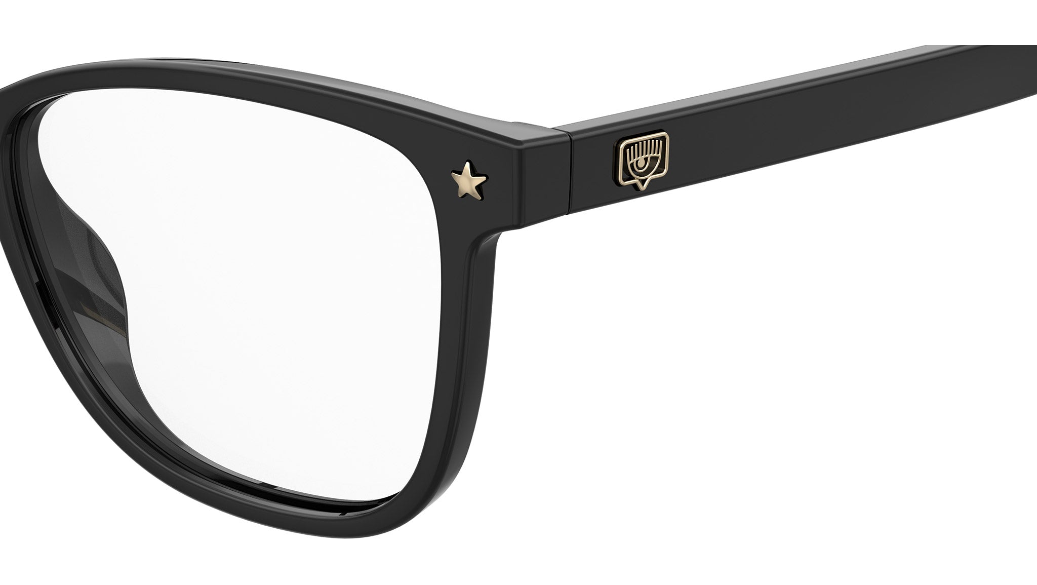 Classic, unexpected, and instantly recognizable - these women’s eyeglasses are emblematic of Chiara’s sophisticated yet playful personal style! The full-rim cat-eye wide rectangular e frames offer a thoroughly modern take on authentic timeless designs, while the metallic Chiara Ferragni Eyelike logo on temples and distinctive star trims on lugs front adds a subtle dose of bling and glamour, making them an essential accessory for a stylish everyday look!