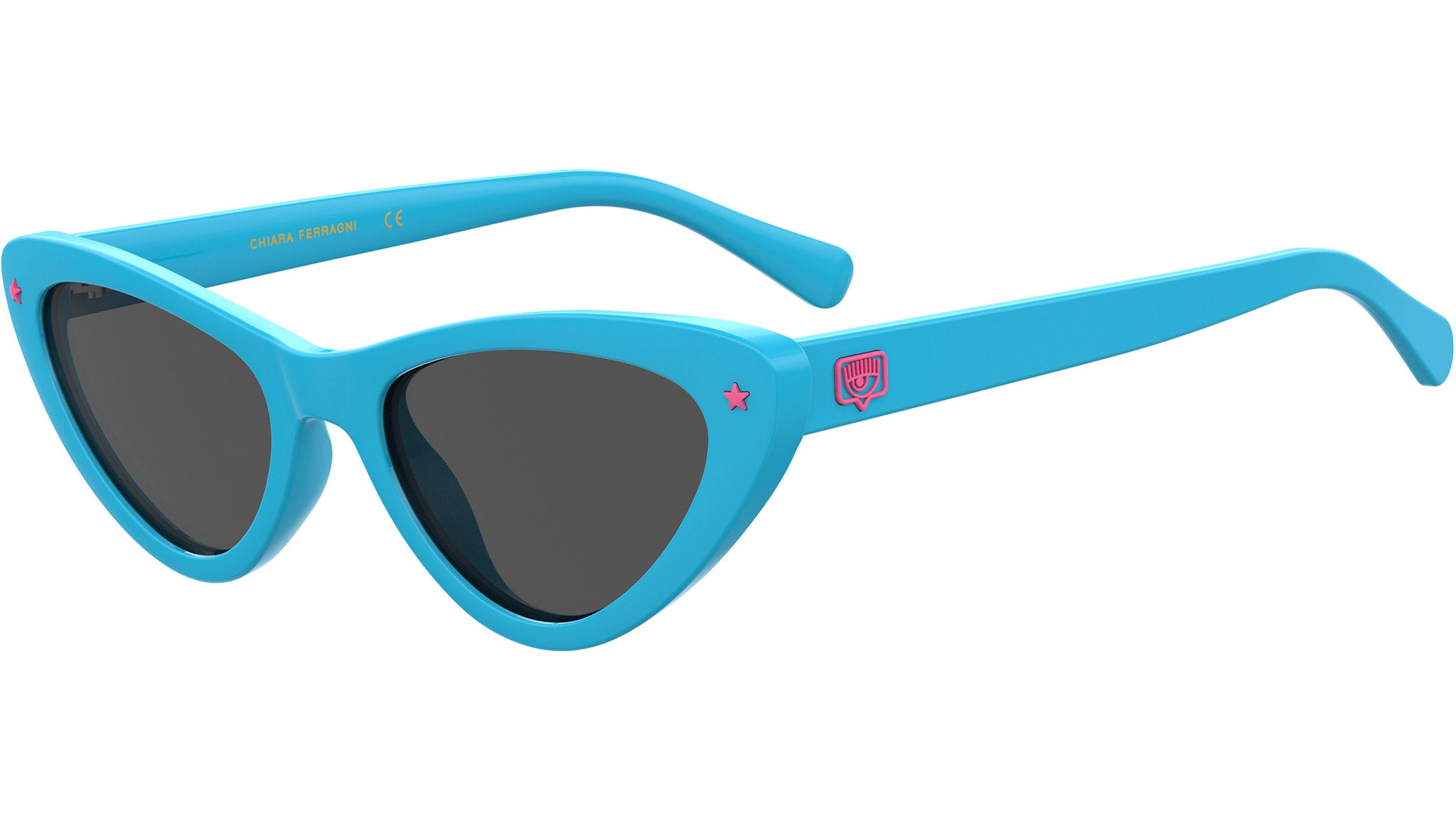 Glamorous, sexy and fun. The SEXY EYE sunglasses are the Chiara’s interpretation of the timeless cat-eye silhouette, with unmistakable Chiara Ferragni Eyelike logo-embellished temples and front featuring the funny yet stylish stars on lug. This unique style, available in a range of eye-catching fluo colors, glitter and classic nuances, is a celebration of everyday femininity!