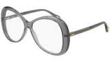 Occhiali da vista Chloé modello CH0011O 003, variante colore grigio scuro trasparente lucido con astine color grigio. Scopri la nuova collezione eyewear donna Chloé Primavera Estate 2021, che include una gamma completa di montature da vista. La Maison parigina è riconosciuta per il suo fascino naturale che bilancia il savoir-faire dei coutourier di alta gamma con un'attitudine giovanile.