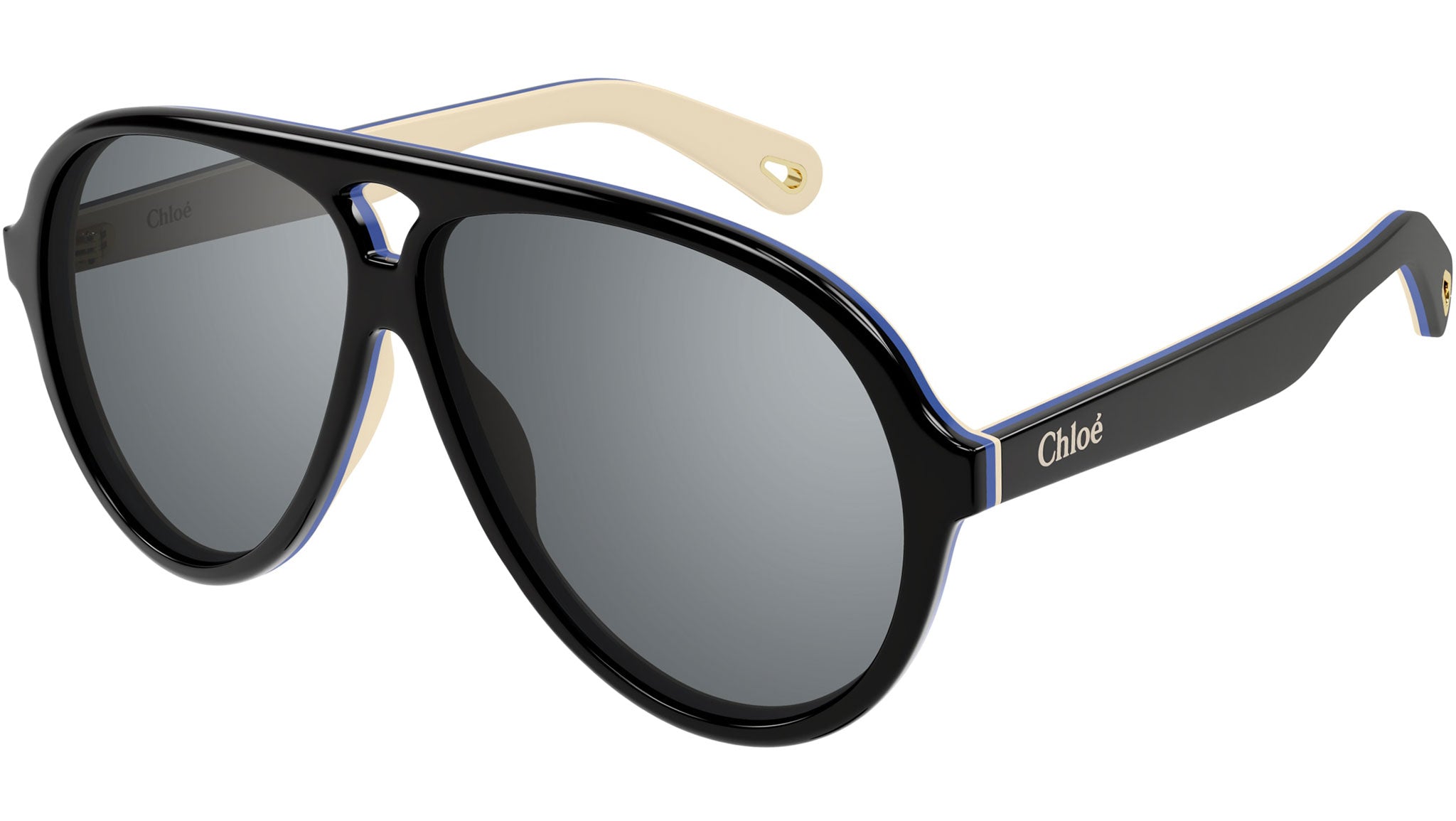 Occhiali da sole Chloé CH0211S 004 donna con montatura aviatore in acetato riciclato nero lucido solido triplo layer / blu / avorio e lenti argento + grigio tinta unita. Linea: Chloé. Codice modello: CH0211S. Codice colore: 004. Made in Italy. Rivenditore autorizzato Chloé online. Gli occhiali vengono consegnati con custodia e accessori originali e sono coperti dalla garanzia ufficiale di 12 mesi del produttore.