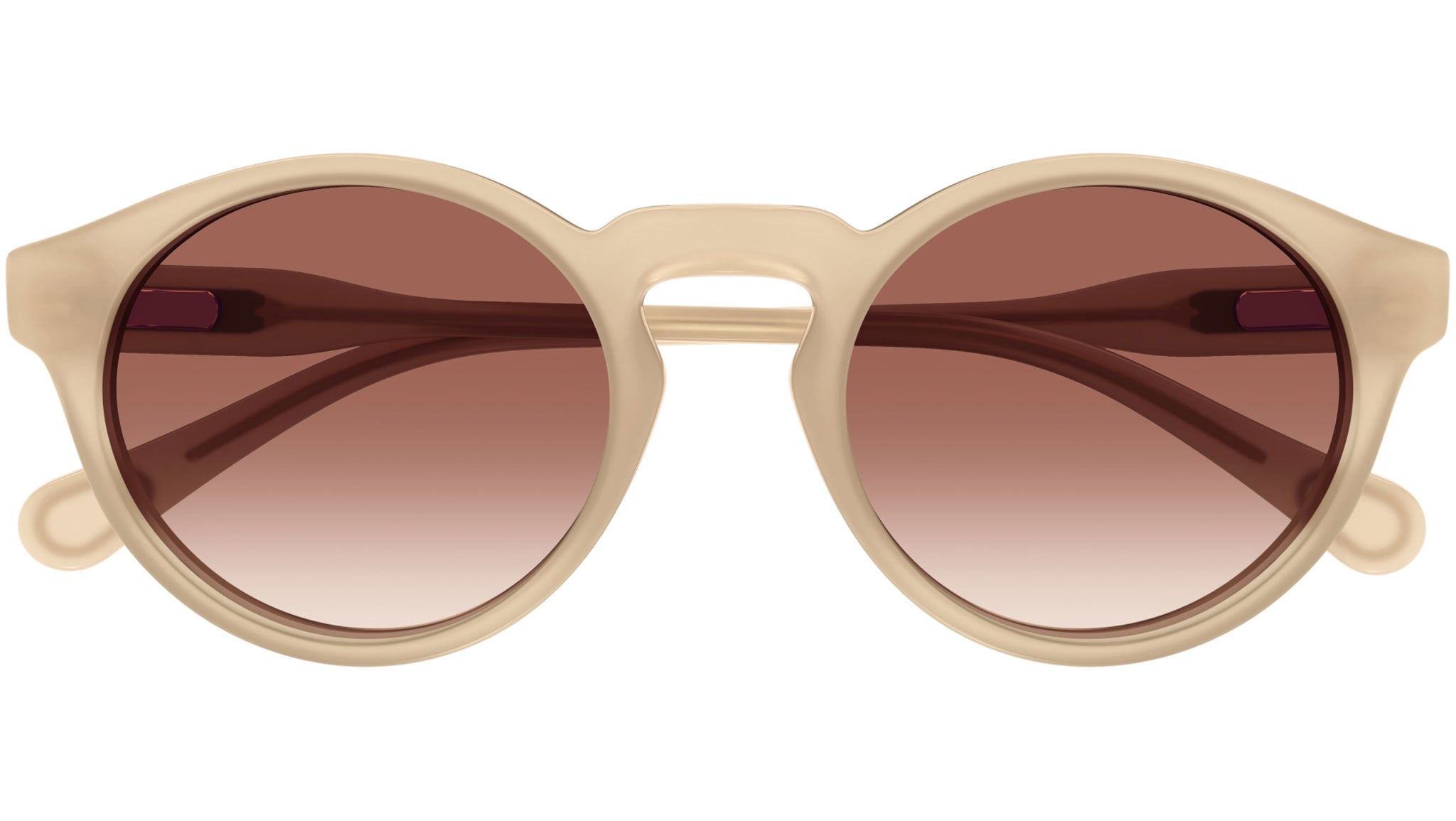 Occhiali da sole Chloé Kids modello CC0014S variante colore 004 bianco latte lucido con lenti color mattone sfumato.