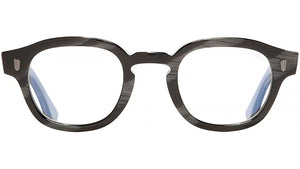 The postmodernist rectangle, with 3D milled acetate to give the frame depth and structure. The frame owes its lines to the classic rectangle combination frame. Reimagined in full acetate using the finest new techniques, perfected in Cutler and Gross own factory. Featuring stepped sides which reflect the architecture of post-modern buildings such as Piramides by Soeters van Eldonk Architecten and the M2 Building by Kengo Kuma. Colour combinations make this classic silhouette into a wearable, yet daring frame.