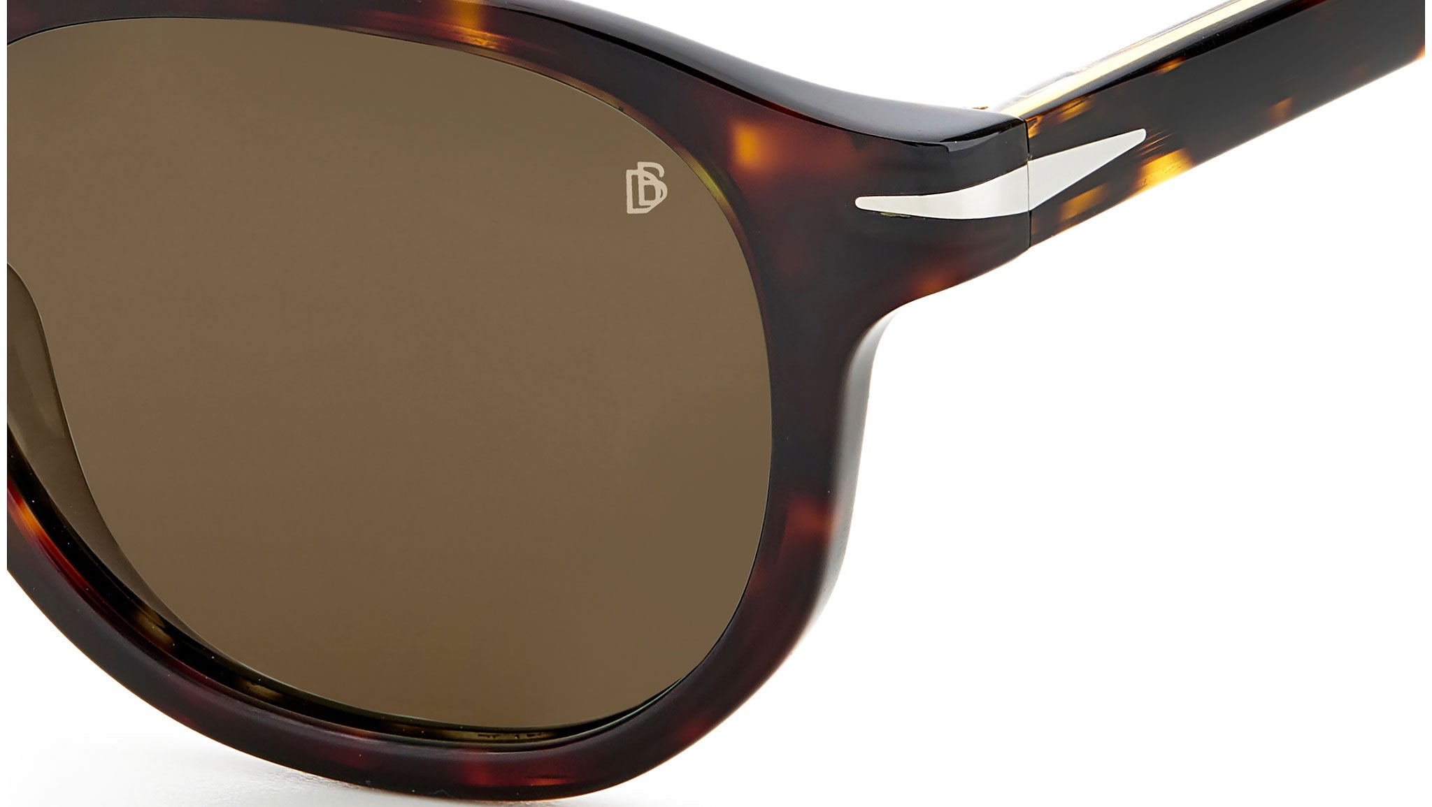 Bold yet timelessly elegant, these sunglasses take the traditional, geometric silhouette to new heights. Fashioned from acetate, the full-rim round frames are paired with a retro keyhole nose bridge and the collection’s signature temples, where a chiselled stainless-steel wire core, engraved with the iconic DB logo, remains subtly visible on the inside.