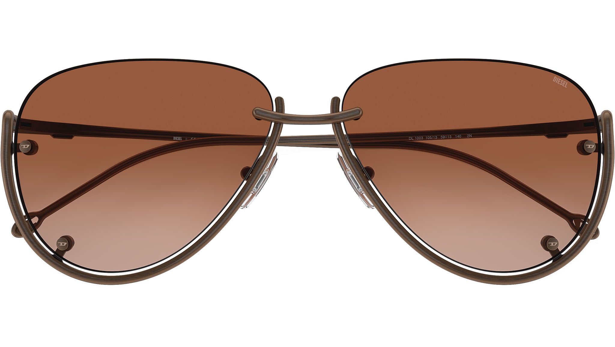 Occhiali da sole Diesel DL1003 105/13 unisex con montatura aviatore in metallo rame antico lucido e lenti in nylon color marrone sfumato. Naselli regolabili. Linea: Fashion Show Inspiration. Codice modello: 0DL1003. Codice colore: 105/13. Made in Italy. Rivenditore autorizzato Diesel online. Gli occhiali vengono consegnati con custodia e accessori originali e sono coperti dalla garanzia ufficiale di 12 mesi del produttore.