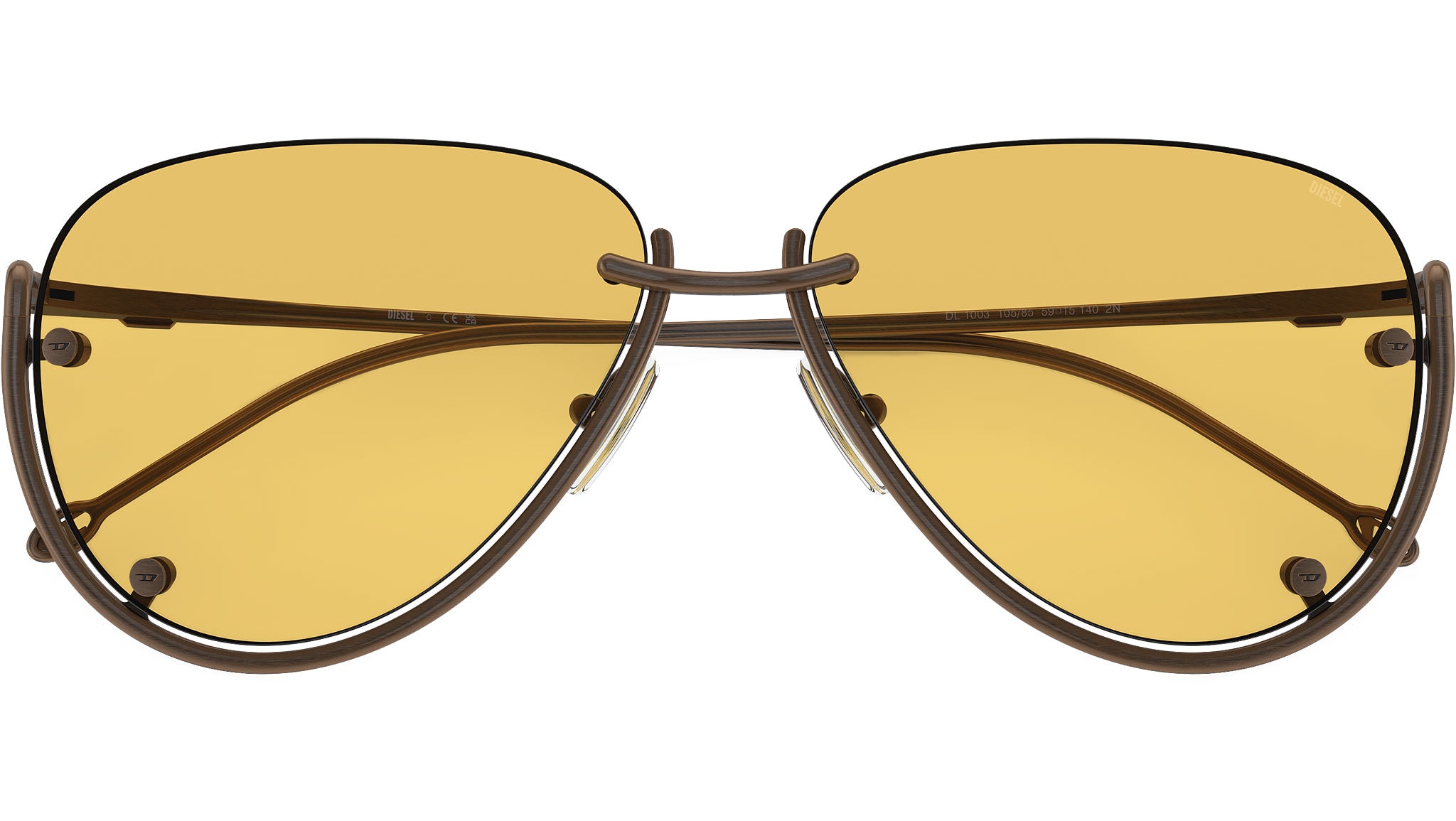 Occhiali da sole Diesel DL1003 105/85 unisex con montatura aviatore in metallo rame antico lucido e lenti in nylon color verde. Naselli regolabili. Linea: Fashion Show Inspiration. Codice modello: 0DL1003. Codice colore: 105/85. Made in Italy. Rivenditore autorizzato Diesel online. Gli occhiali vengono consegnati con custodia e accessori originali e sono coperti dalla garanzia ufficiale di 12 mesi del produttore.