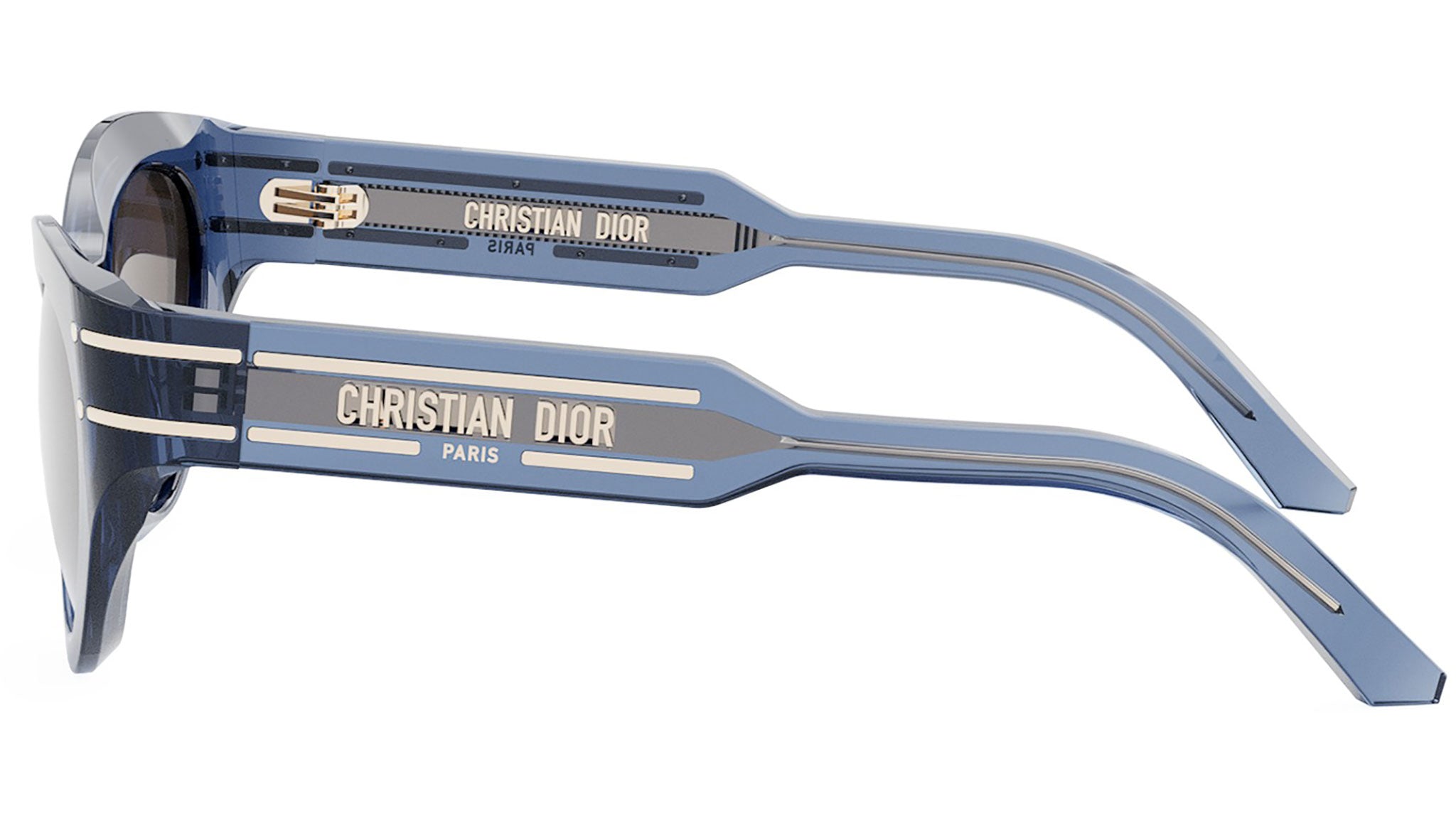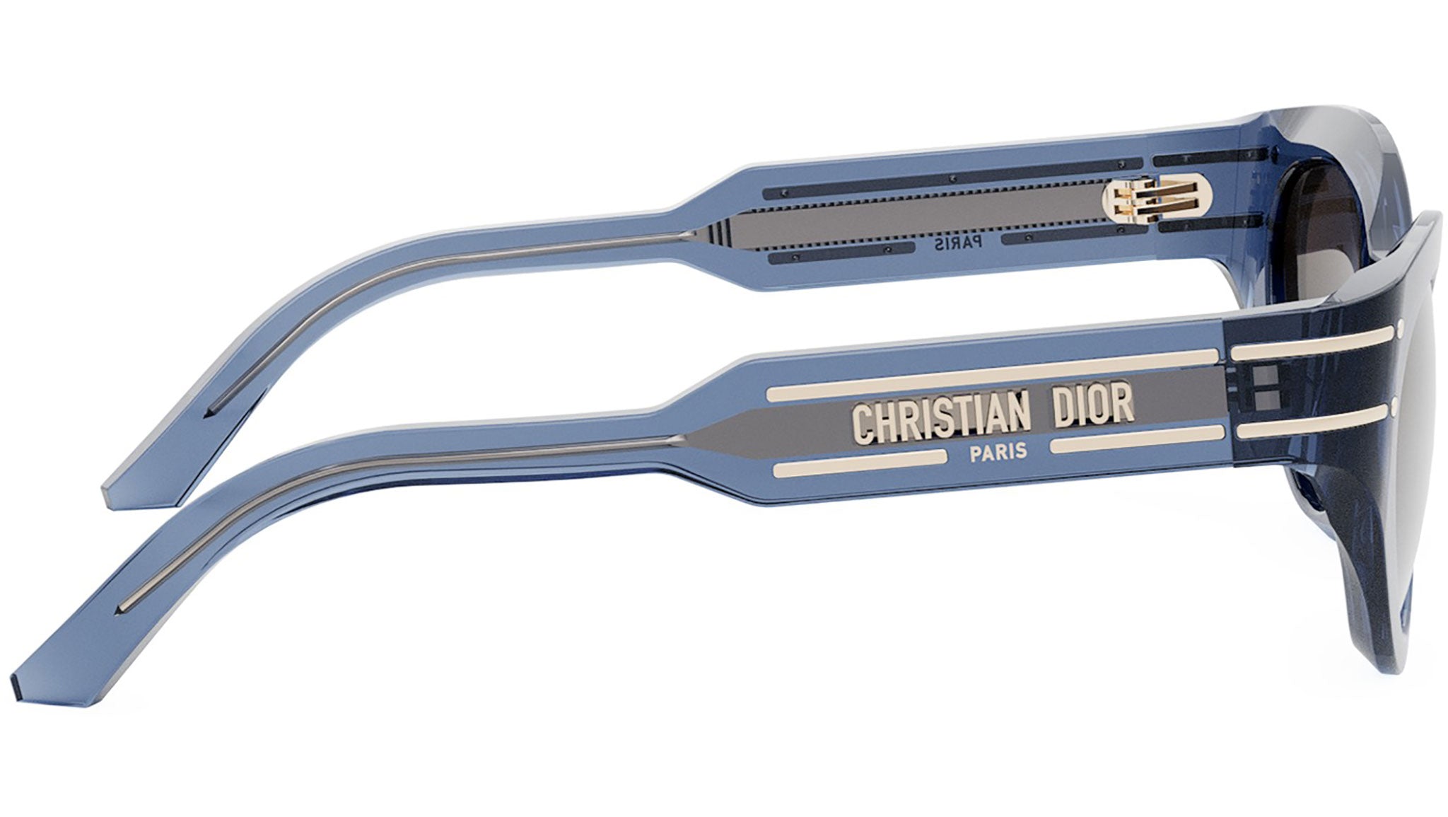 Occhiali da sole DIOR donna linea DiorSignature modello B7I 30F2 blu lucido. Lo stile elegante urbano DiorSignature mette in mostra l'iconico logo "Christian Dior Paris", evidenziato da linee in metallo dorato sulle aste. Rivenditore autorizzato DIOR online. Gli occhiali vengono consegnati con custodia e accessori originali.