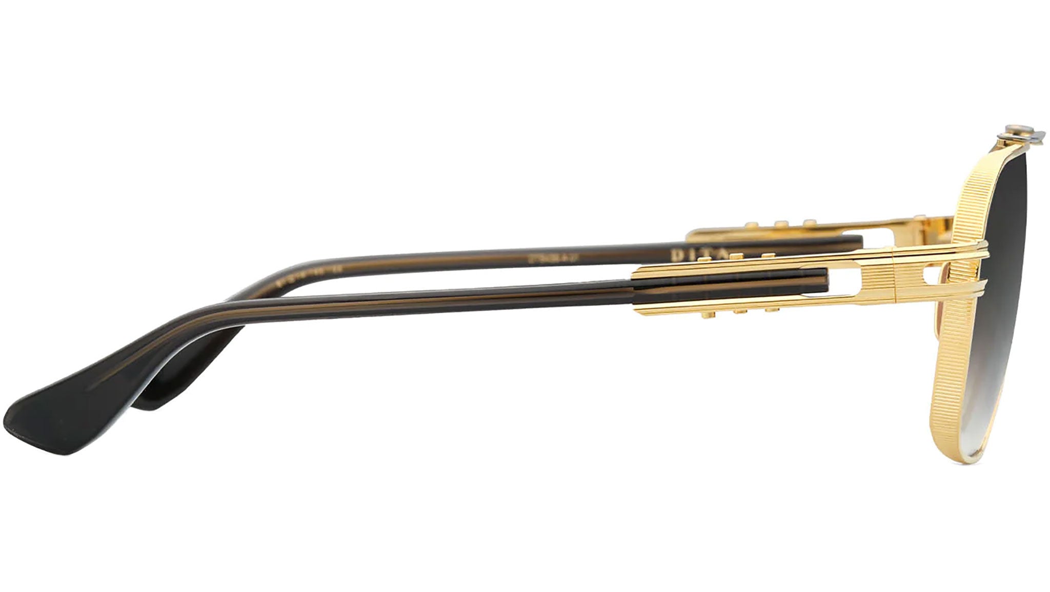 DITA Kudru esemplifica l'arte del design degli occhiali da sole, con la sua montatura in titanio stile navigator, che incarna una spiccata estetica maschile. Il design delle aste evidenzia l'impegno di DITA verso l'innovazione e la competenza ingegneristica, con un sistema di regolazione a tre punti, per una personalizzazione che assicura comfort ottimale e vestibilità. La meticolosa artigianalità di Kudru è evidente nelle linee pressate sul bordo delle lenti e nella costruzione in due pezzi di titanio per sopracciglio e ponte. La montatura artigianale è accompagnata da una scatola Dita con chiusura magnetica, un panno in microfibra per la pulizia delle lenti, una custodia morbida in microfibra e un libretto di garanzia, riflettendo la dedizione del marchio alla qualità e allo stile.
