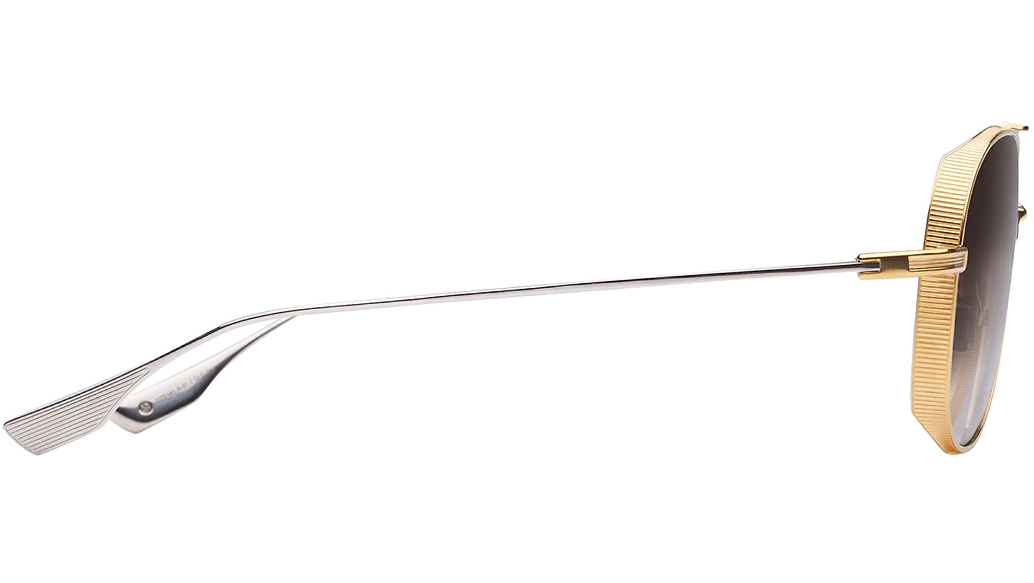 Dita’s designers set out with the goal of making one of the most ornate and highly detailed all-titanium aviators in the history of the brand, resulting in Subsystem. Subsystem boasts jaw-dropping details throughout: dual-tone titanium construction with intricate pressed lines, an angular brow bar and stepped bridge, and an aggressively flared titanium lens rim with pressed lines continuing through its temples and end pieces. High quality titanium frame and temples. Pressed line detail on lens rim, temple end piece and temple. Titanium nose pads. Thin titanium with elegantly sculpted temple tips. 100% UVA and UVB lens with anti-reflective coating. Made in Japan.