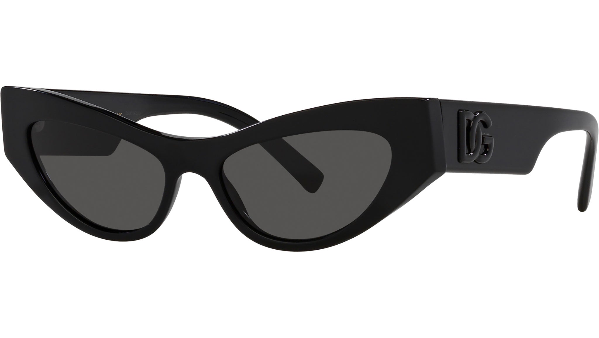 Occhiali da sole Dolce&Gabbana modello DG 4450 linea Dna codice colore 501/87 nero in acetato forma cat eye con lenti color grigio scuro.