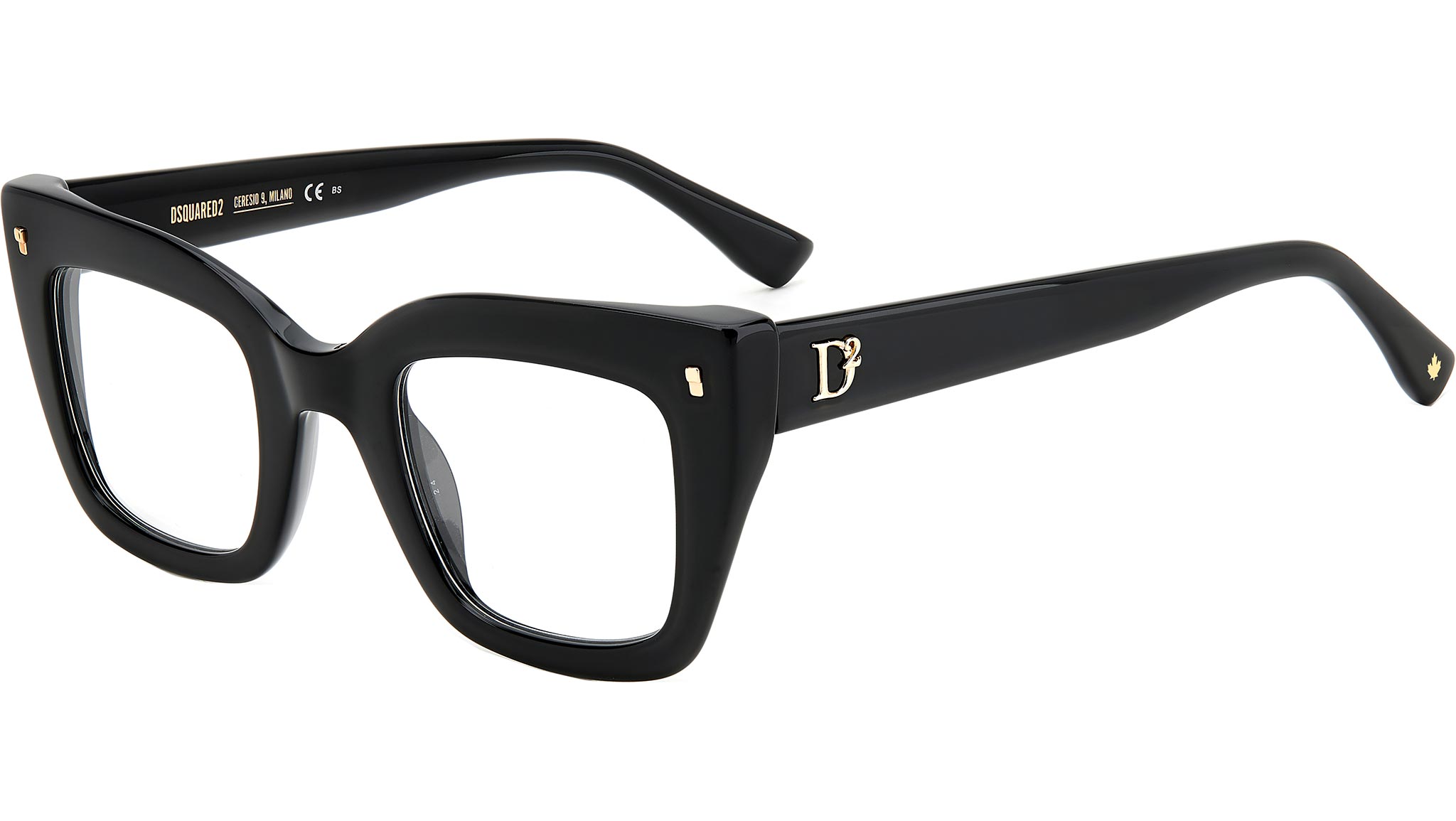 Occhiali da vista Dsquared2 modello D2 0099 codice colore 807 nero con lenti demo Ad attrarre subito l’attenzione in questi occhiali da vista in acetato DSQUARED2 è il frontale bold vintage e gli originali rivetti in metallo sull’angolo esterno. Il design sofisticato di questo occhiale femminile è firmato dal logo D2 in alto rilievo sulle aste, ispirato dagli accessori donna, e dai terminali impreziositi dalla foglia d’acero, simbolo del brand. Rivenditore autorizzato online Dsquared2.