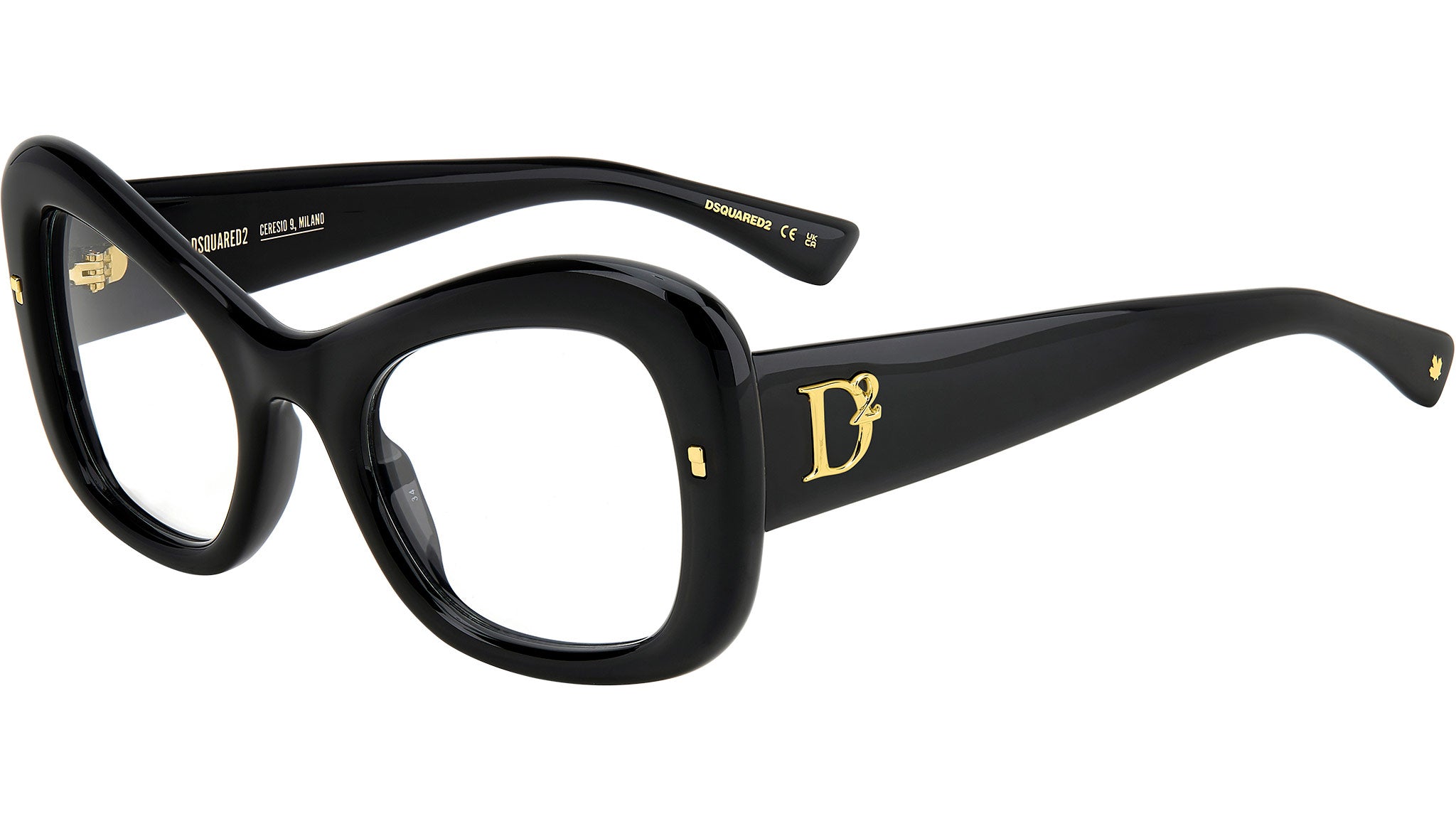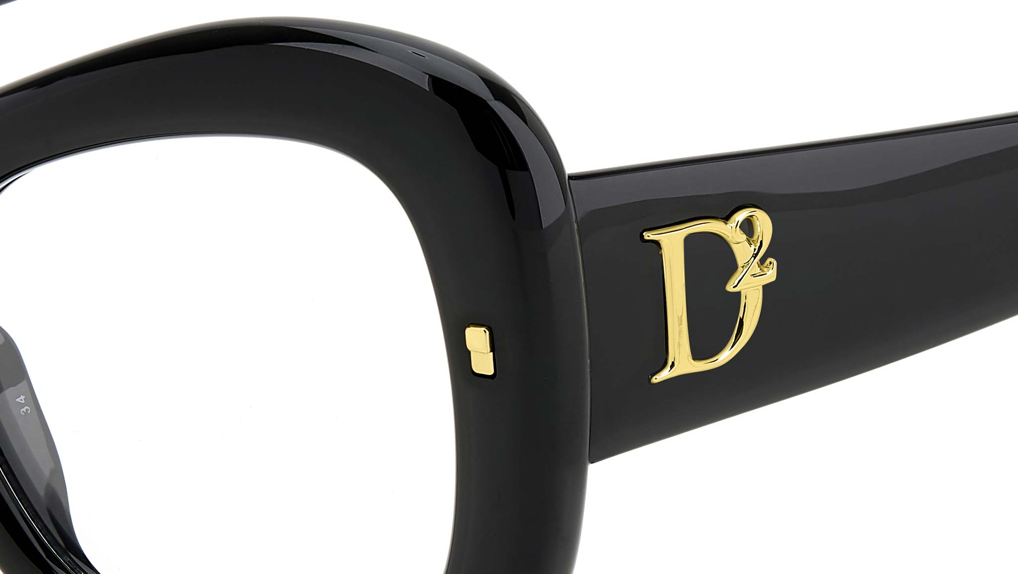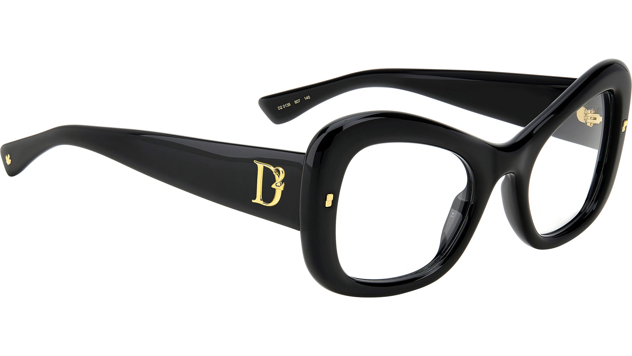 Occhiali da vista Dsquared2 modello D2 0138 codice colore 807 nero con lenti demo Tutt’altro che basic questi occhiali da vista DSQUARED2 per donna. Forma a farfalla, profili tondeggianti, ispirazione retrò: c’è tutto l’occorrente per non passare inosservate. La montatura in acetato è proposta nelle cromie più raffinate, anche effetto corno, illuminata dai dettagli in metallo: i rivetti sul frontale, il logo D2 in rilievo, la foglia d’acero sui terminali. Sul lato interno dell’asta destra è stampata la dicitura CERESIO 9, MILANO. Rivenditore autorizzato online Dsquared2.