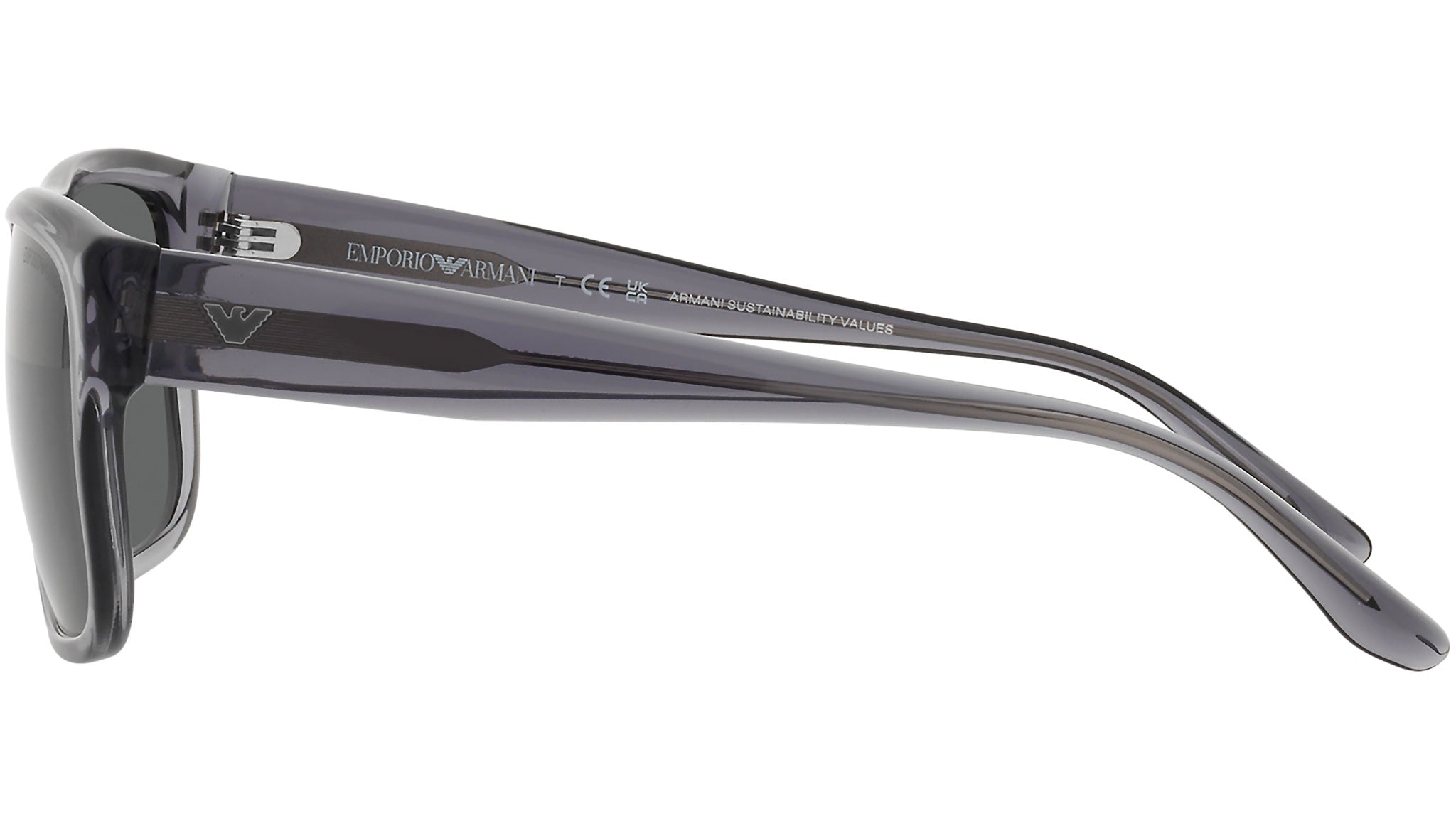 Occhiali da sole Emporio Armani linea Runway modello EA4197 codice colore 502987 con montatura full rim in acetato grigio trasparente e lenti in bio poliammide color grigio scuro. Fitting: ponte nasale alto. Linea: Runway. Codice modello: 4197. Codice colore: 502987. Rivenditore Emporio Armani autorizzato online. Tutti i modelli Armani vengono consegnati con custodia e accessori originali e sono coperti da garanzia ufficiale del produttore di 12 mesi.