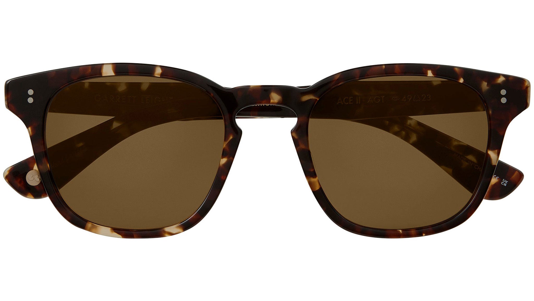 Occhiali da sole Garrett Leight Ace II Sun Agate Tortoise unisex con montatura squadrata in acetato tartaruga agata e lenti caffè puro semi-piatto. Linea: GLCO. Codice modello: 2147. Codice colore: AGT/SFPCOF. Rivenditore autorizzato Garrett Leight online. Gli occhiali vengono consegnati con custodia e accessori originali e sono coperti dalla garanzia ufficiale di 12 mesi del produttore.