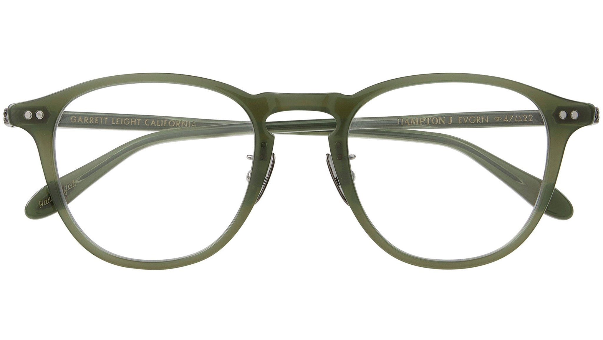 Occhiali da vista Garrett Leight Hampton J Evergreen unisex con montatura rotonda in acetato sempreverde e lenti lenti demo. Linea: Forever Classics. Codice modello: 1165. Codice colore: EVGRN. Rivenditore autorizzato Garrett Leight online. Gli occhiali vengono consegnati con custodia e accessori originali e sono coperti dalla garanzia ufficiale di 12 mesi del produttore.