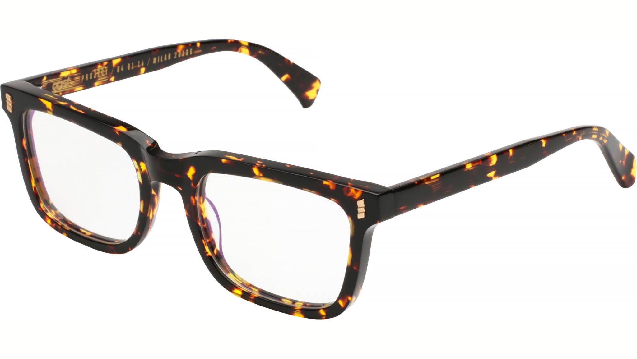 Occhiali da vista con montatura in acetato artigianale di colore avana classico e lenti demo. Materiale del telaio: acetato. Forma del telaio: geometrici. Cerniere metalliche a cinque barre e nucleo in filo personalizzato. Custodia rigida premium e panno per la pulizia in microfibra.