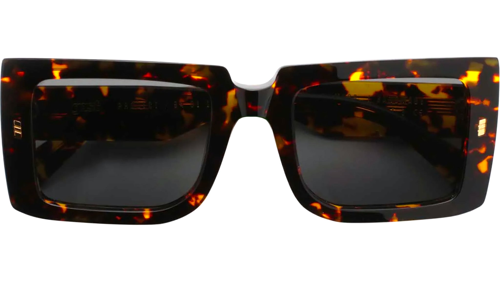 Occhiali da sole con montatura in acetato artigianale di colore avana fiamma e lenti grigio. Materiale del telaio: acetato. Forma del telaio: quadrati. Cerniere metalliche a cinque barre e nucleo in filo personalizzato. Custodia rigida premium e panno per la pulizia in microfibra.