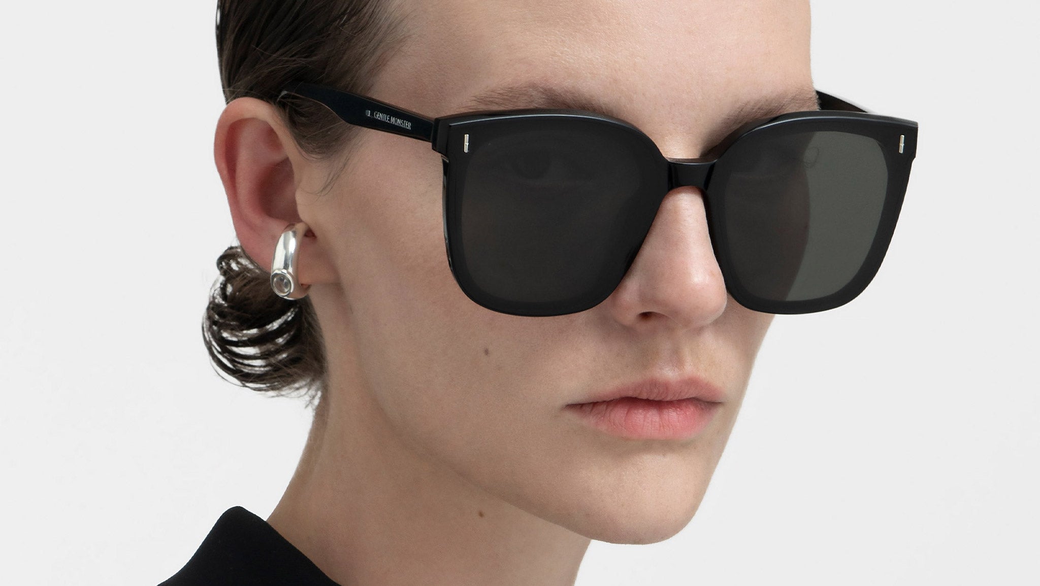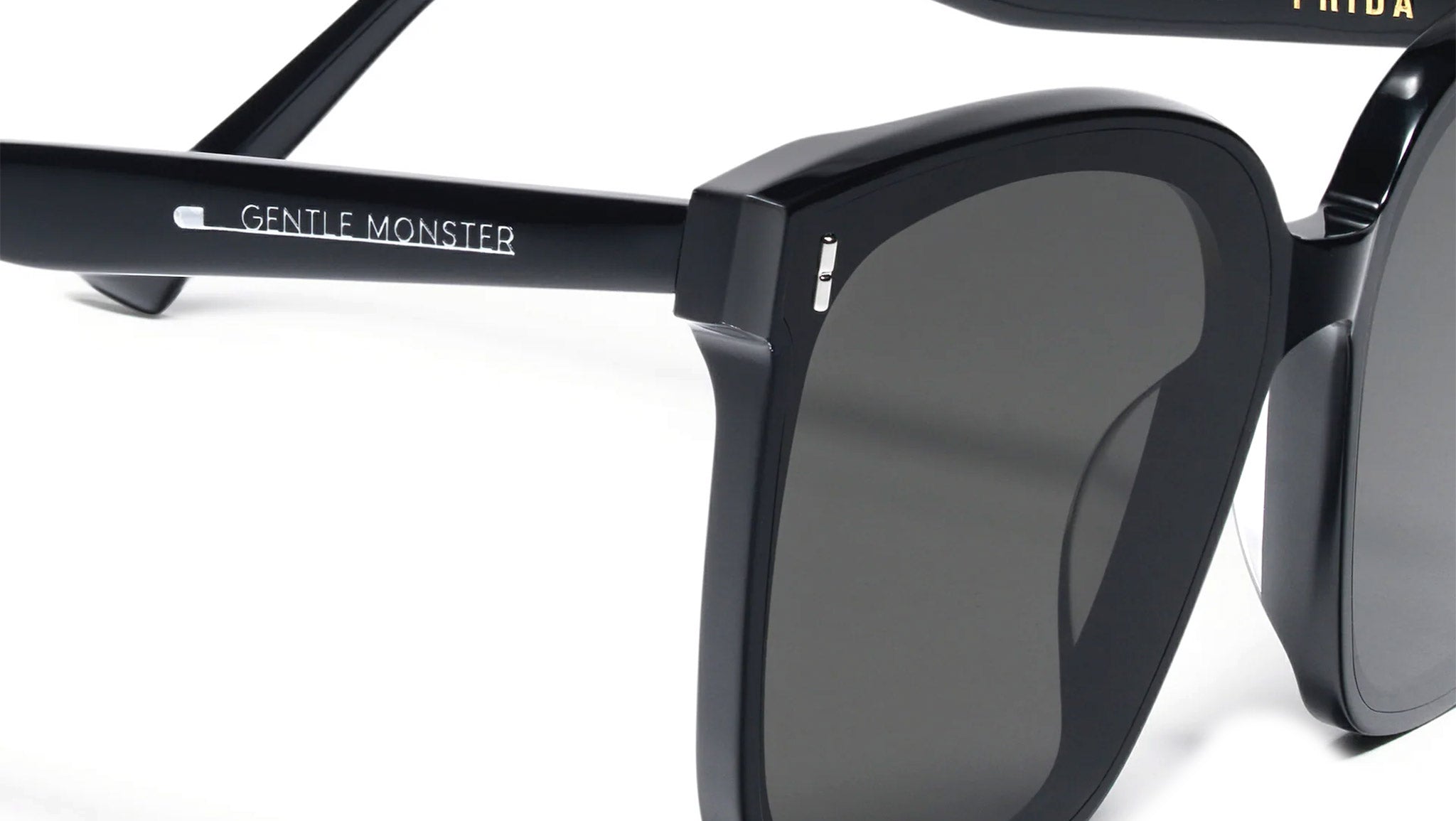 Frida 01 is an oversized square Flatba frame from the 2021 Pre-Collection. The soft curves of bottom and linear design of the top merge together to perfectly blend the frame front. The 99.9% UV protected black Zeiss lenses are accentuated with a metal detail.