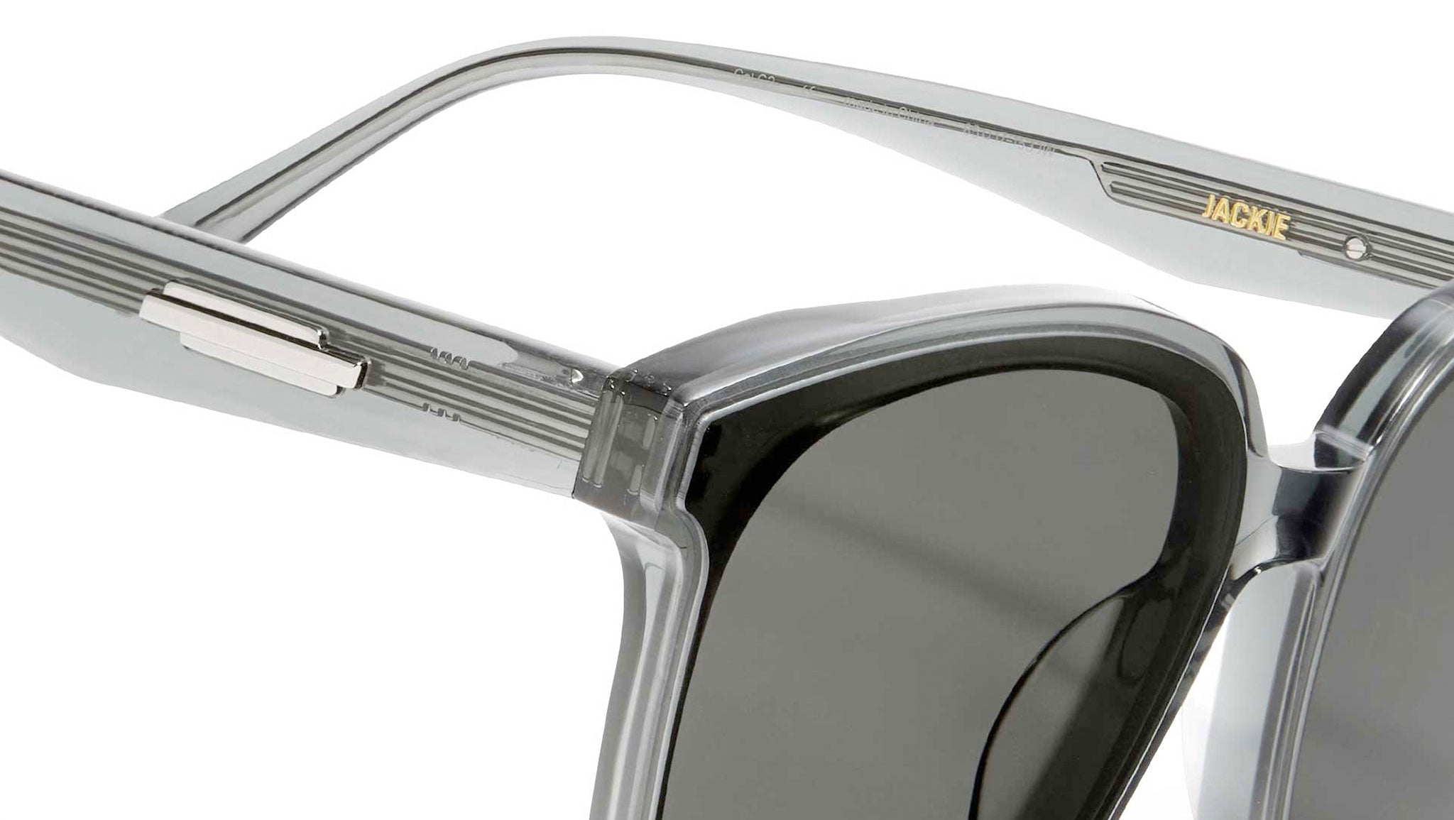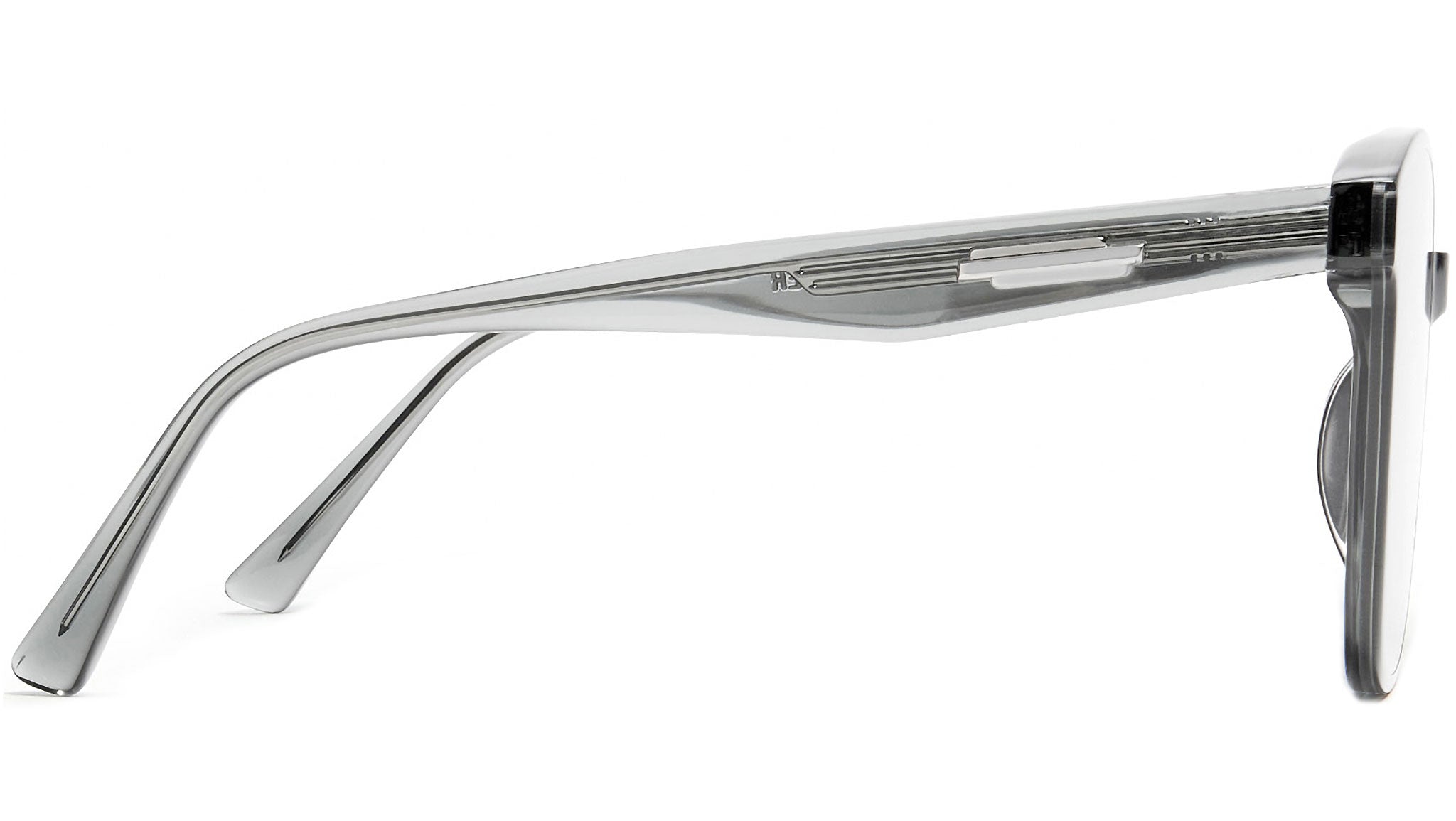 Jackie G3 is a clear grey square acetate Flatba frame with 99.9% UV protected black Zeiss lenses. This versatile design with soft curves and temples decorated with unique metal details is designed to fit any occasion. Square Flatba frame. Oversized acetate frame. Metal details on temples. Frame Front: 148.7mm, Frame Side: 152.6mm. Lens Width: 54.8mm, Lens Height: 64.5mm. Country of Manufacturer: China.