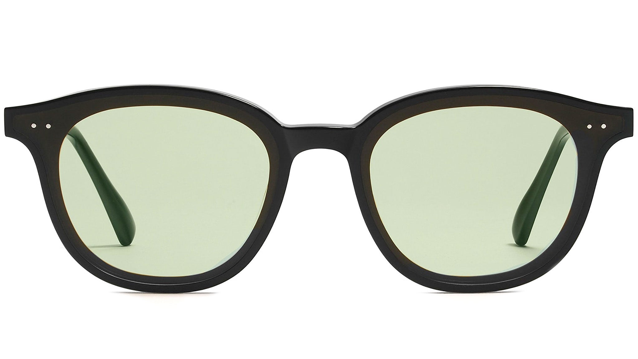 Crafted to complement all occasions, Lang 01 K from the New Flatba Series features round shaped lenses to emphasize the frame front. This style is accentuated with two circular silver pins on each of the 99.9% UV protected lenses and engraved Gentle Monster logos in silver on the temples. Round acetate frame. Circular pin details. Green tinted lenses. Frame Front: 150.3mm, Frame Side: 147mm. Lens Width: 64.6mm, Lens Height: 47.4mm. Bridge: 18mm. Country of Manufacturer: China.