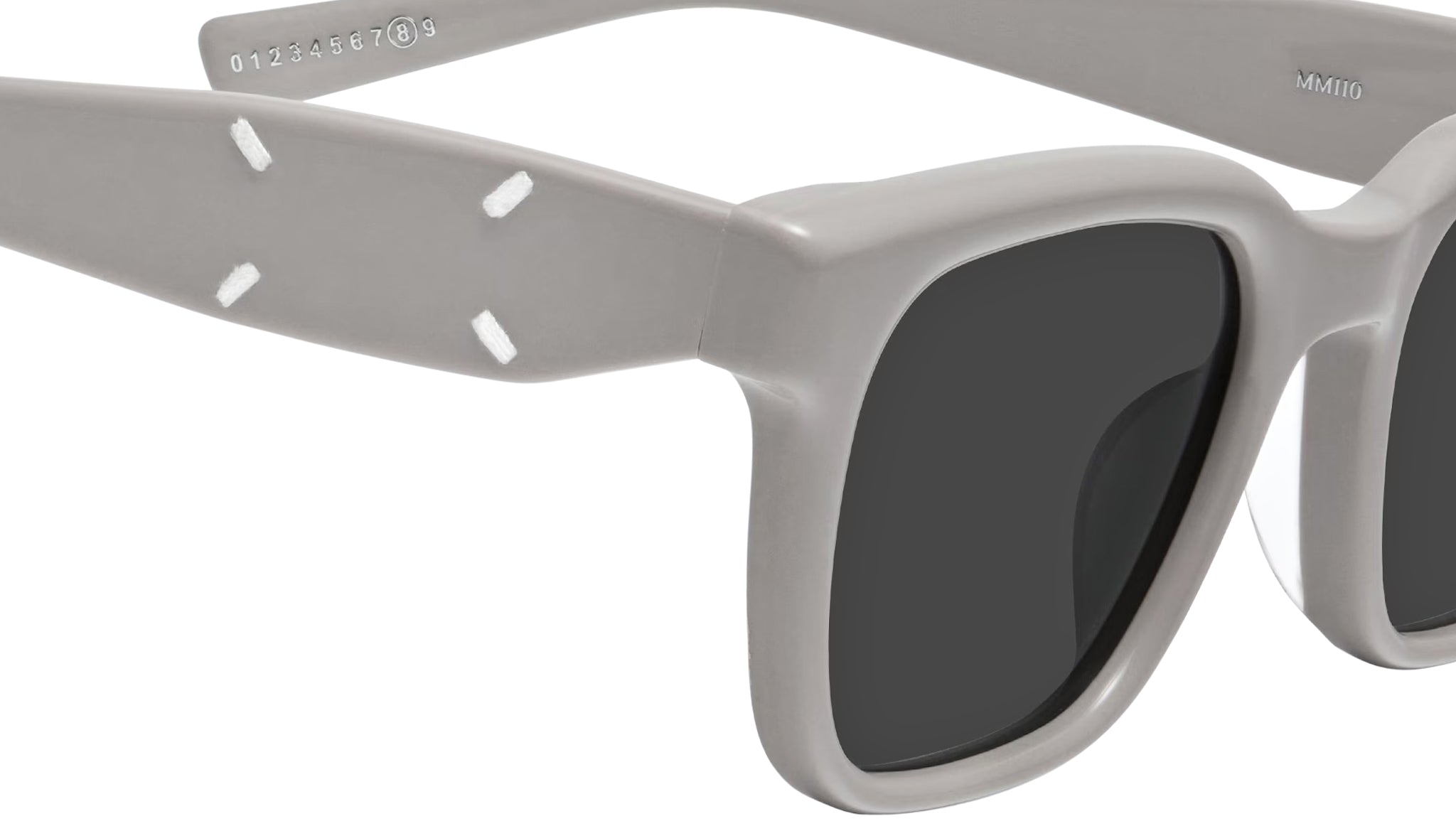 Scopri gli occhiali da sole MM110 G10 della seconda collaborazione tra Gentle Monster e Maison Margiela. La loro forma squadrata e audace si fonde armoniosamente con un discreto colore grigio, conferendo alla montatura un'atmosfera moderna. I quattro punti di cucitura bianchi ai lati delle aste sono il dettaglio iconico di Maison Margiela che cattura lo sguardo. Immergiti in questa nuova collezione che esprime al meglio l'identità unica dei due brand.