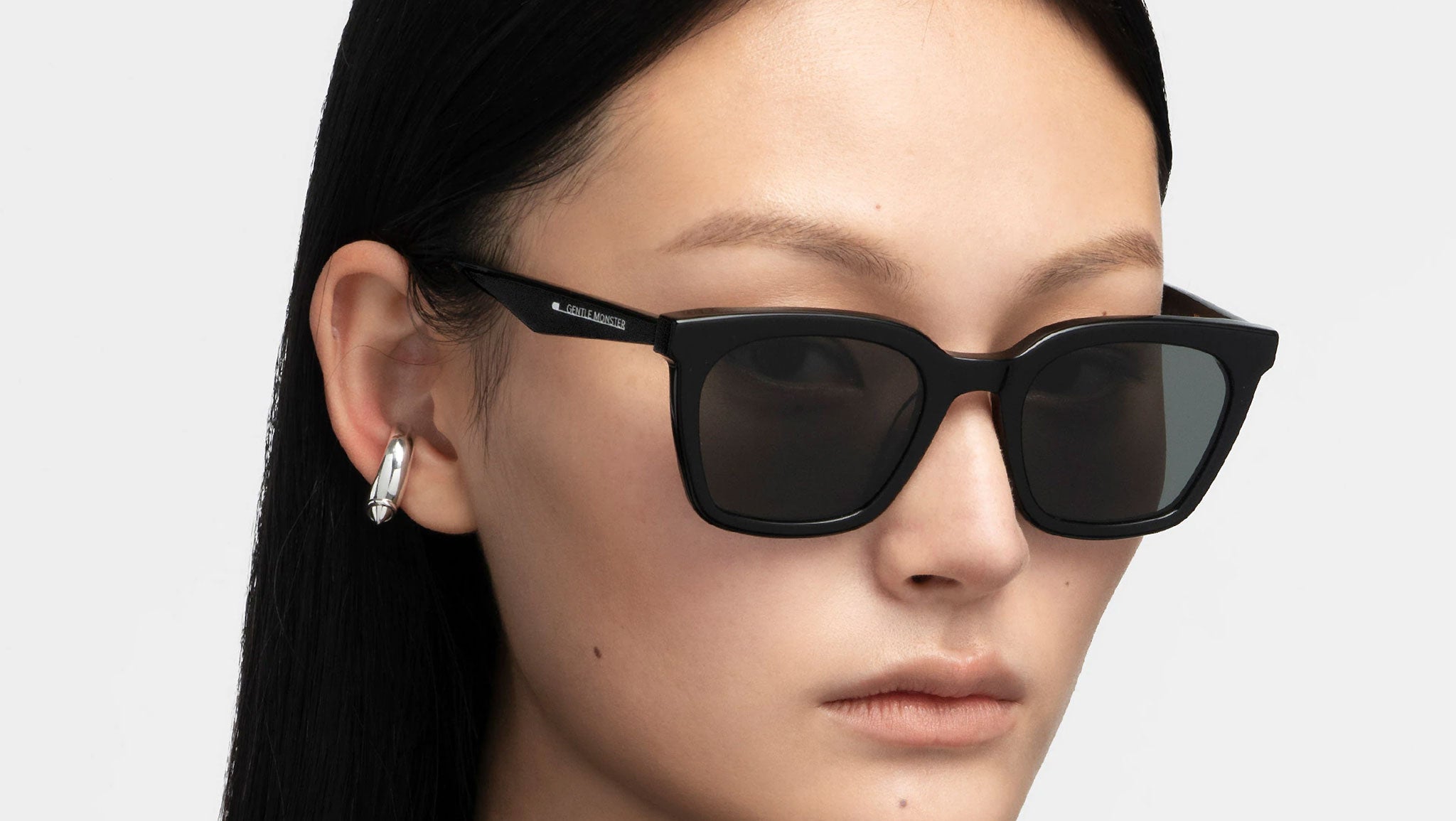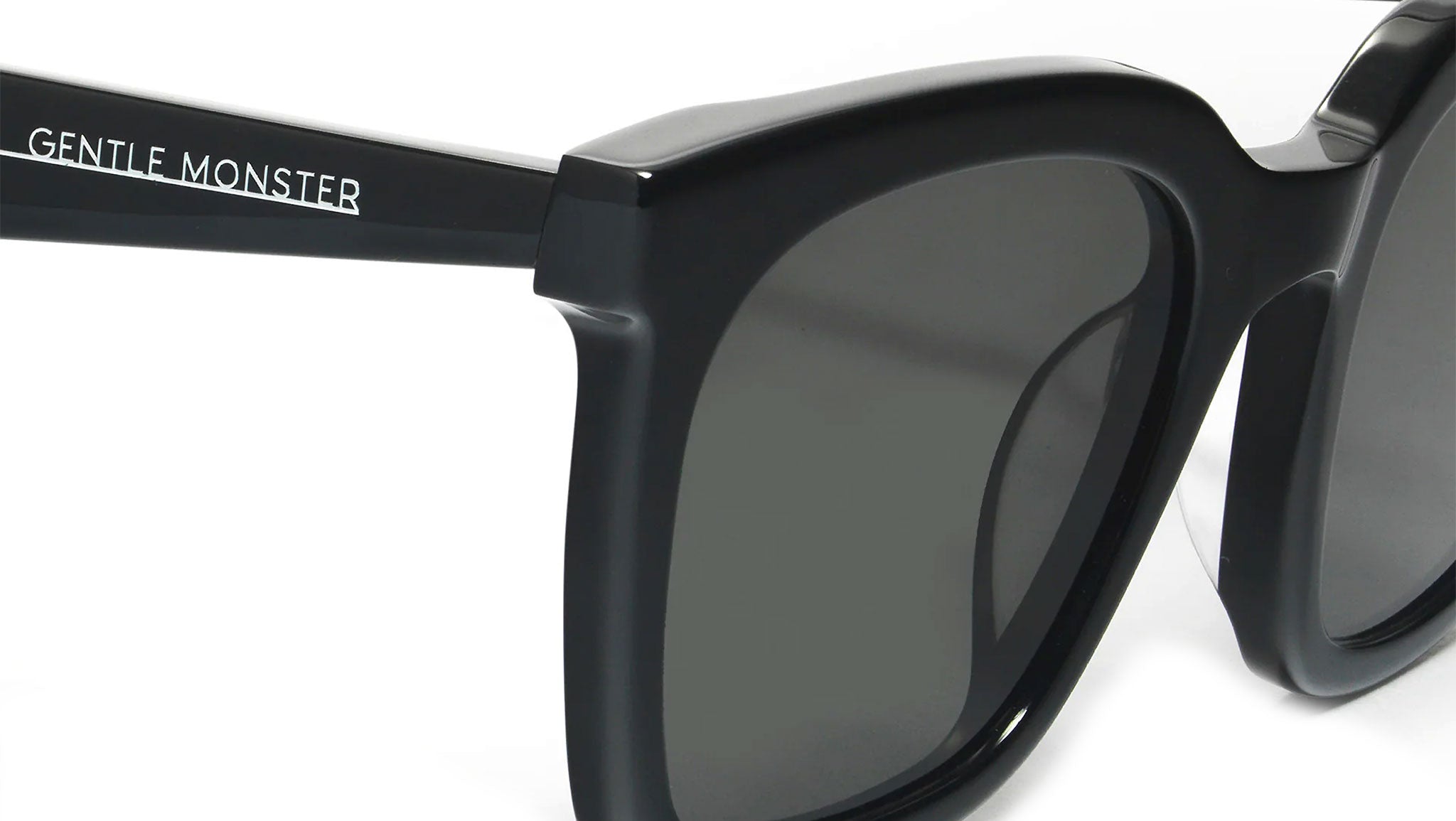 Momati 01 features a black square acetate frame with 99.9% UV protected Zeiss lenses. This perfectly sized classic design is highlighted by the rounded edges of the frame front and contoured temples with a Gentle Monster logo.