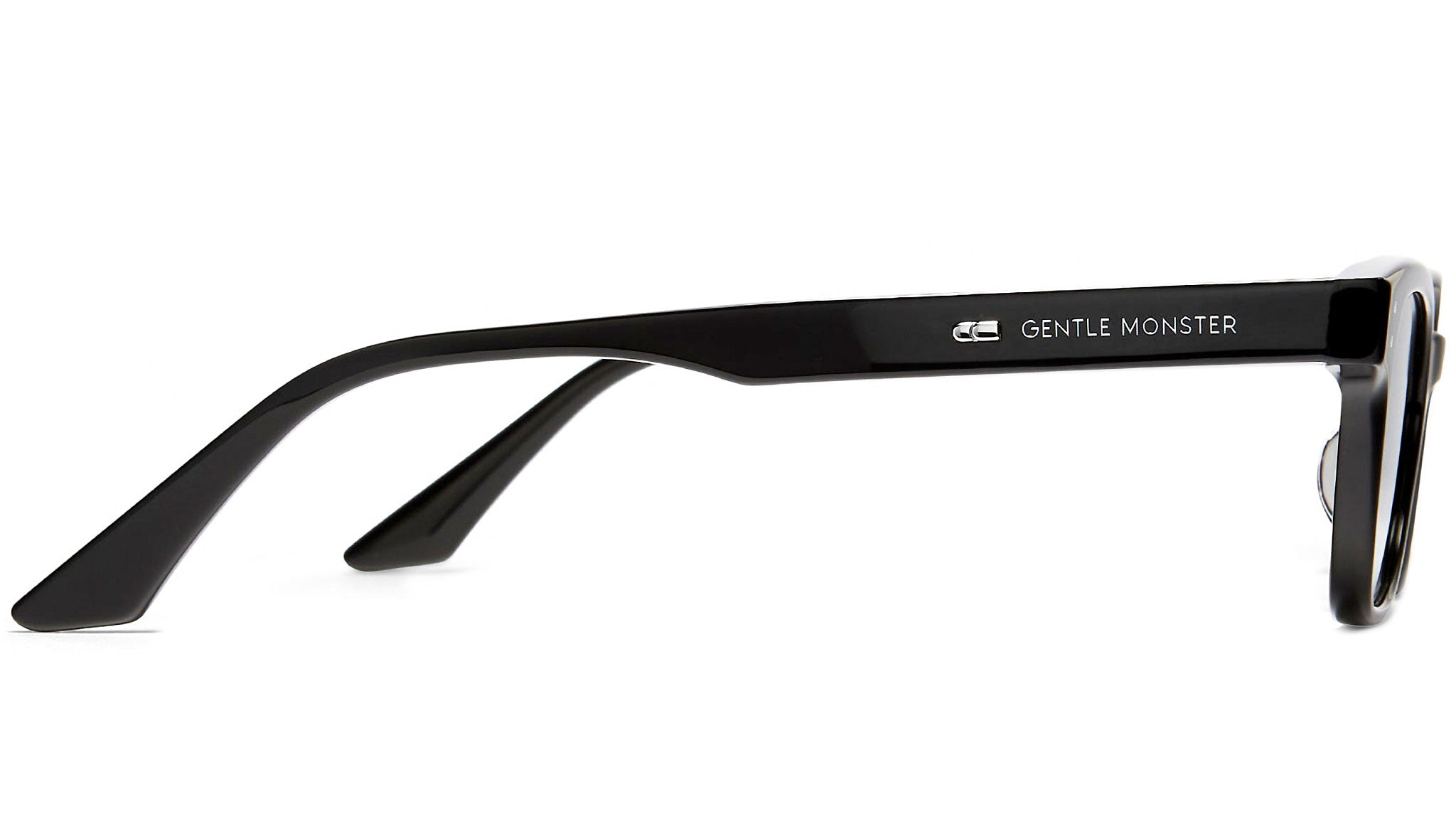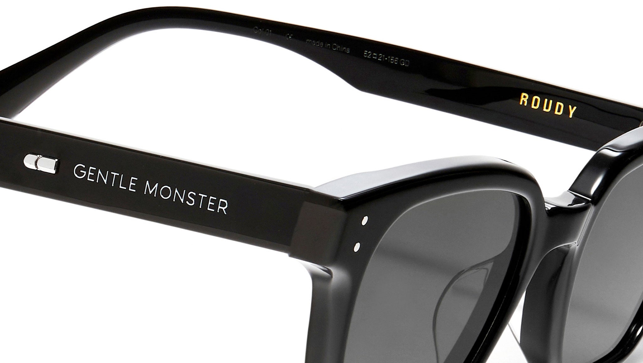 Roudy 01 is a rectangular black acetate frame with 99.9% UV protected black Zeiss lenses. The simple yet refined cornered edges of the frame front are complemented by silver circular pins and the logo detail on the temples. Square acetate frame. Square acetate frame. Laser engraved GENTLE MONSTER logo. Frame Front: 148mm, Frame Side: 155.7mm. Lens Width: 37.6mm, Lens Height: 52.2mm. Country of Manufacturer: China.