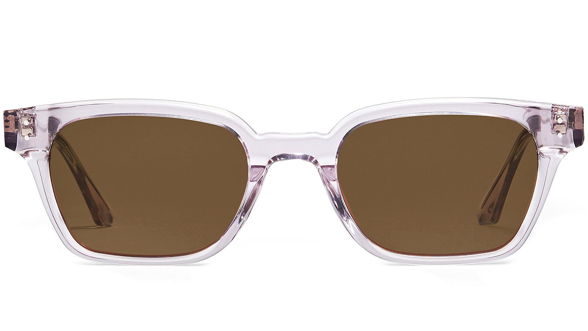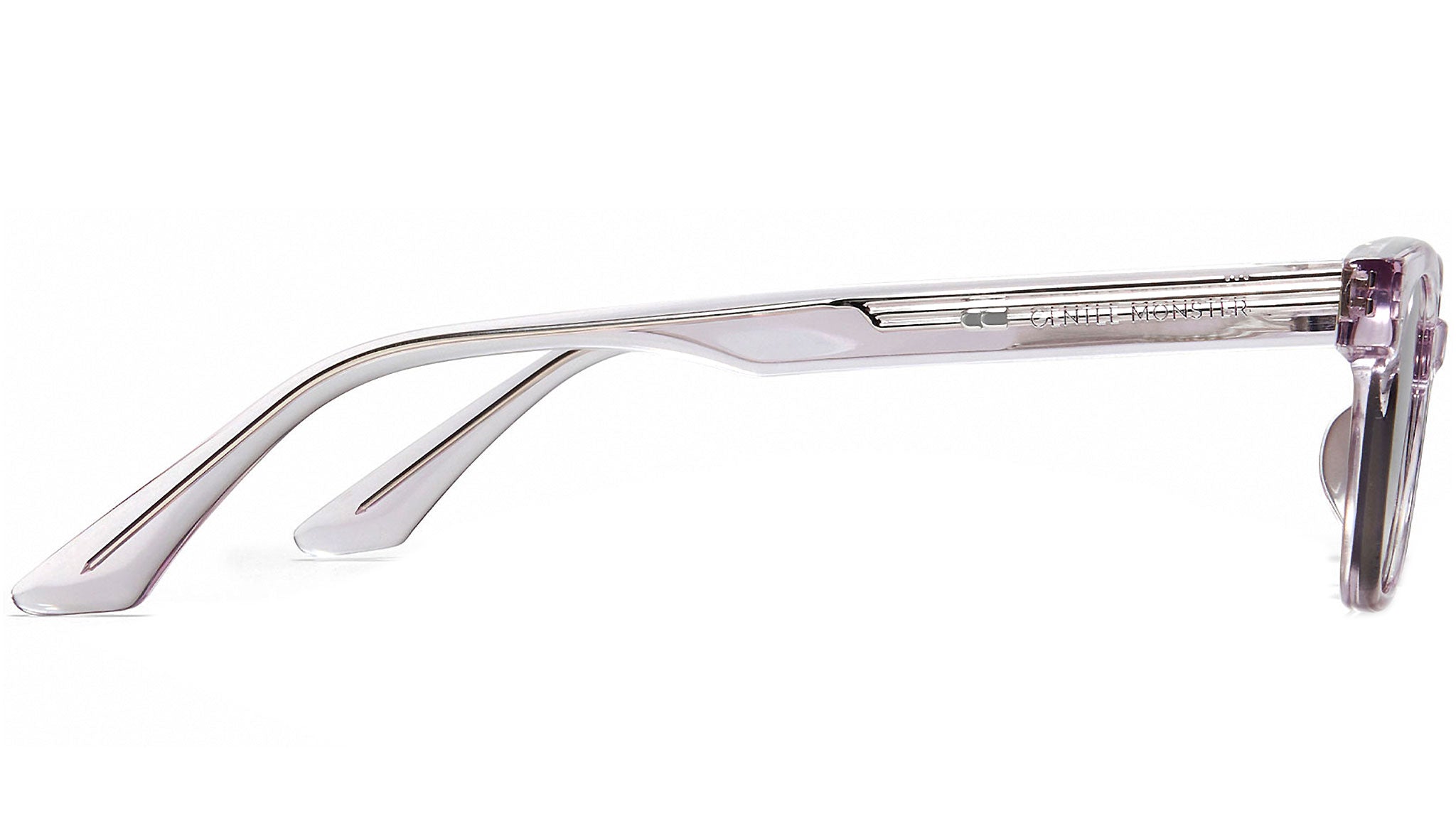 Roudy VC1 is a rectangular violet acetate frame with 99.9% UV protected brown lenses. The simple yet refined cornered edges of the frame front are complemented by silver circular pins and the logo detail on the temples. Square acetate frame. Square acetate frame. Laser engraved GENTLE MONSTER logo. Frame Front: 148mm, Frame Side: 155.7mm. Lens Width: 37.6mm, Lens Height: 52.2mm. Country of Manufacturer: China.