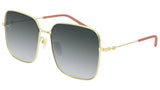 Occhiali da sole Gucci GG0443S 001 con montatura oro endura lucido e lenti color grigio sfumato. Eclettici, moderni, romantici: i prodotti Gucci Eyewear rappresentano la punta di diamante dell'artigianalità italiana, in quanto a qualità e attenzione ai dettagli. Innovativo, prestigioso e audace, Gucci sta reinventando un approccio alla moda totalmente moderno. Nella sua nuova vision creativa, la Maison ha redifinito il concetto di lusso per il 21mo secolo.