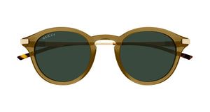Gucci Logo sunglasses collection model GG0746S 003 featuring shiny dark havana frame and solid green lens. Influential, innovative and progressive, Gucci is reinventing a wholly modern approach to fashion. Under a new vision of creativity, the House has redefined luxury for the 21st century, further reinforcing its position as one of the world’s most desirable fashion houses. Eclectic, contemporary, romantic: Gucci products represent the pinnacle of Italian craftsmanship and are unsurpassed for their quality and attention to detail.