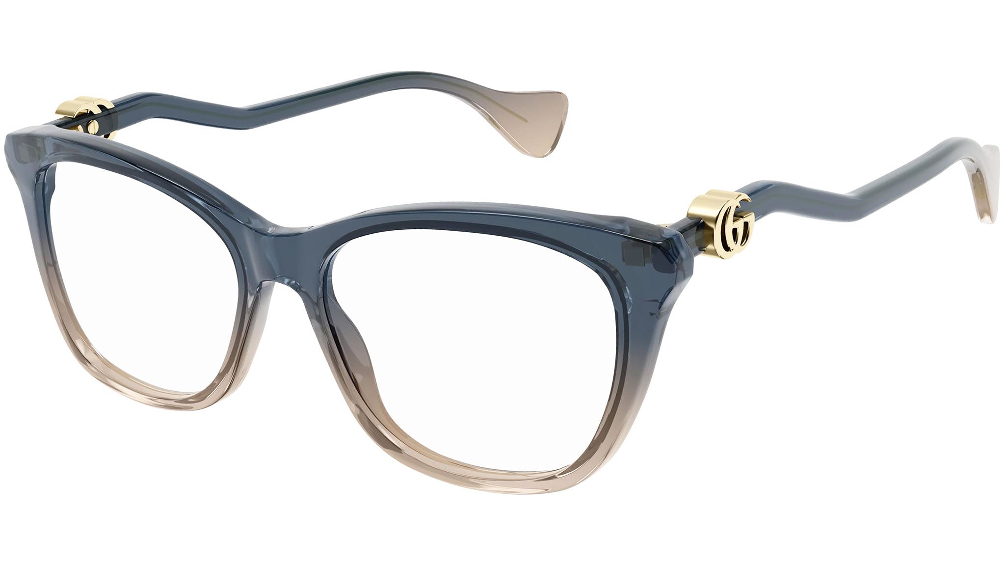 Occhiali da vista Gucci Logo modello GG1012O 002, variante colore blu petrolio trasparente lucido sfumato a rosa con astine color blu. Montature eclettiche e modelli intramontabili: la linea sole Gucci rappresenta la punta di diamante dell'artigianalità italiana. Massima qualità e attenzione ai dettagli, per un nuovo concetto di lusso: Gucci sta reinventando lo stile, con un approccio totalmente moderno alla moda, nella sua nuova vision più creativa, eclettica e audace.