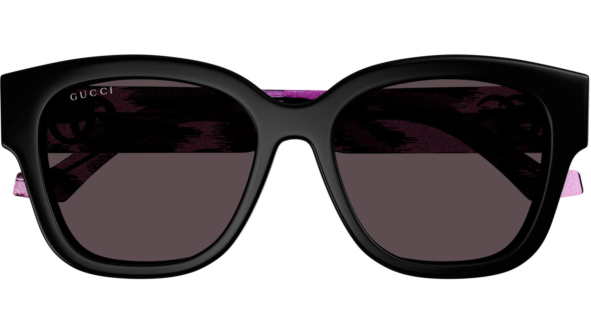 Occhiali da sole Gucci linea GG Logo modello GG1550SK pantos in acetato riciclato codice colore 004 nero lucido con aste nero e lenti color rosso marrone solido.