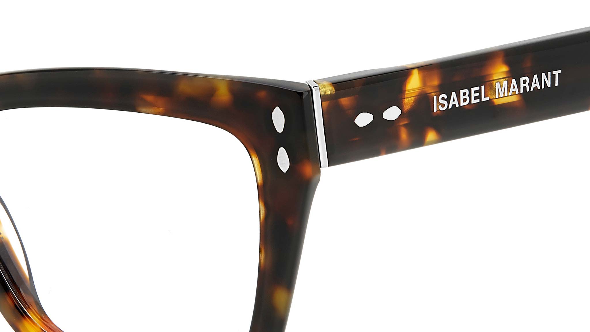 Audace e vistosa ma al contempo leggera e disinvolta: la collezione eyewear The New di Isabel Marant comprende una gamma di montature ultra-flat declinate in nuance femminili ispirate alla collezione prêt-à-porter e agli accessori del brand. Queste montature da vista in acetato presentano una moderna silhouette cat-eye geometrica caratterizzata da un esclusivo dettaglio in metallo sulla cerniera. I terminali e i rivetti in metallo a forma di foglia evocano il distintivo dettaglio Leaf di Isabel Marant.